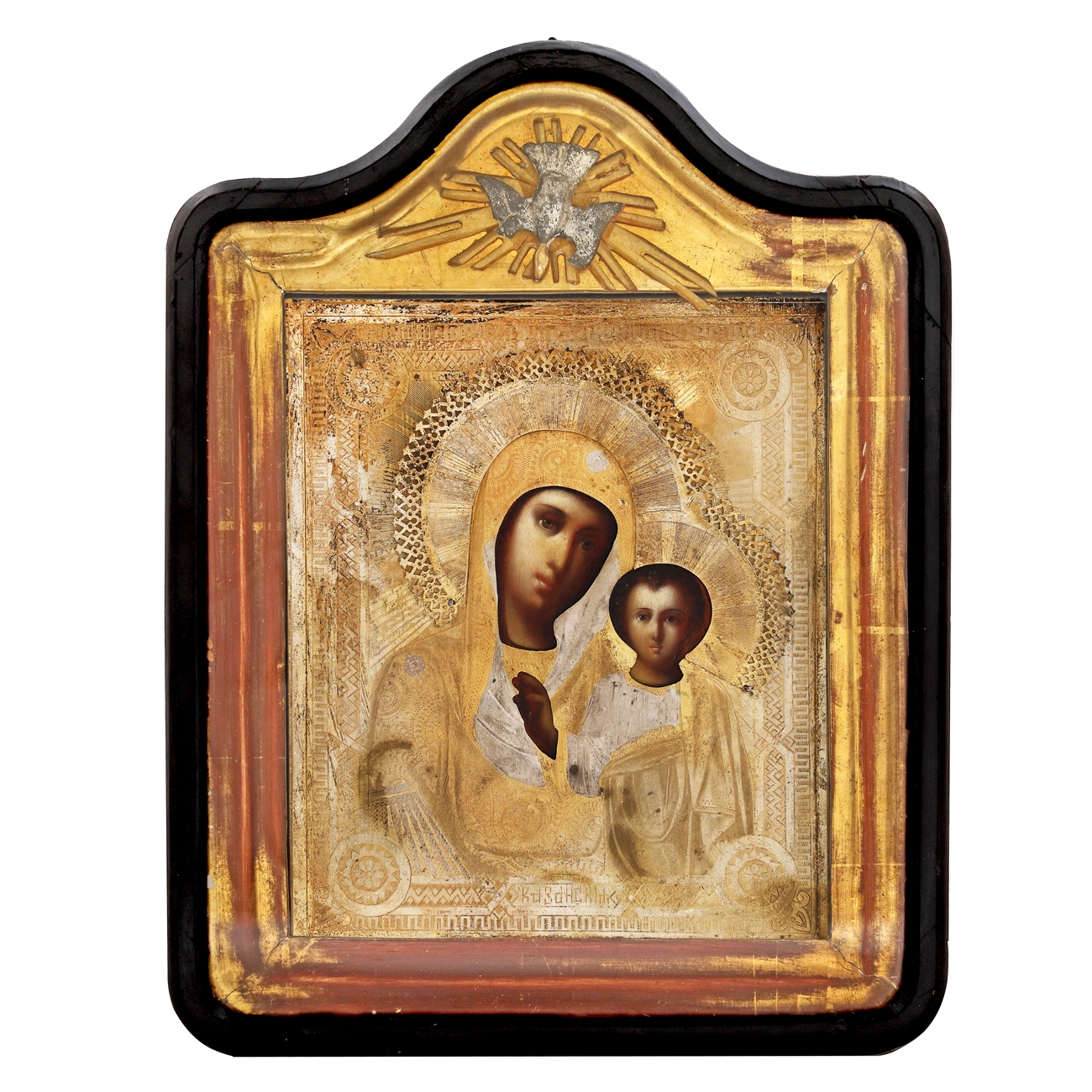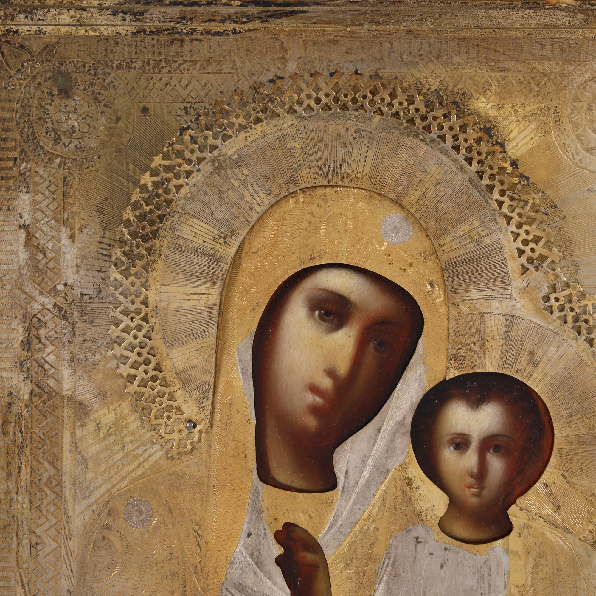 61. Icoană pe lemn, cu ferecătură, "Maica Domnului cu Pruncul", școală rusească, sfârșitul sec. XIX