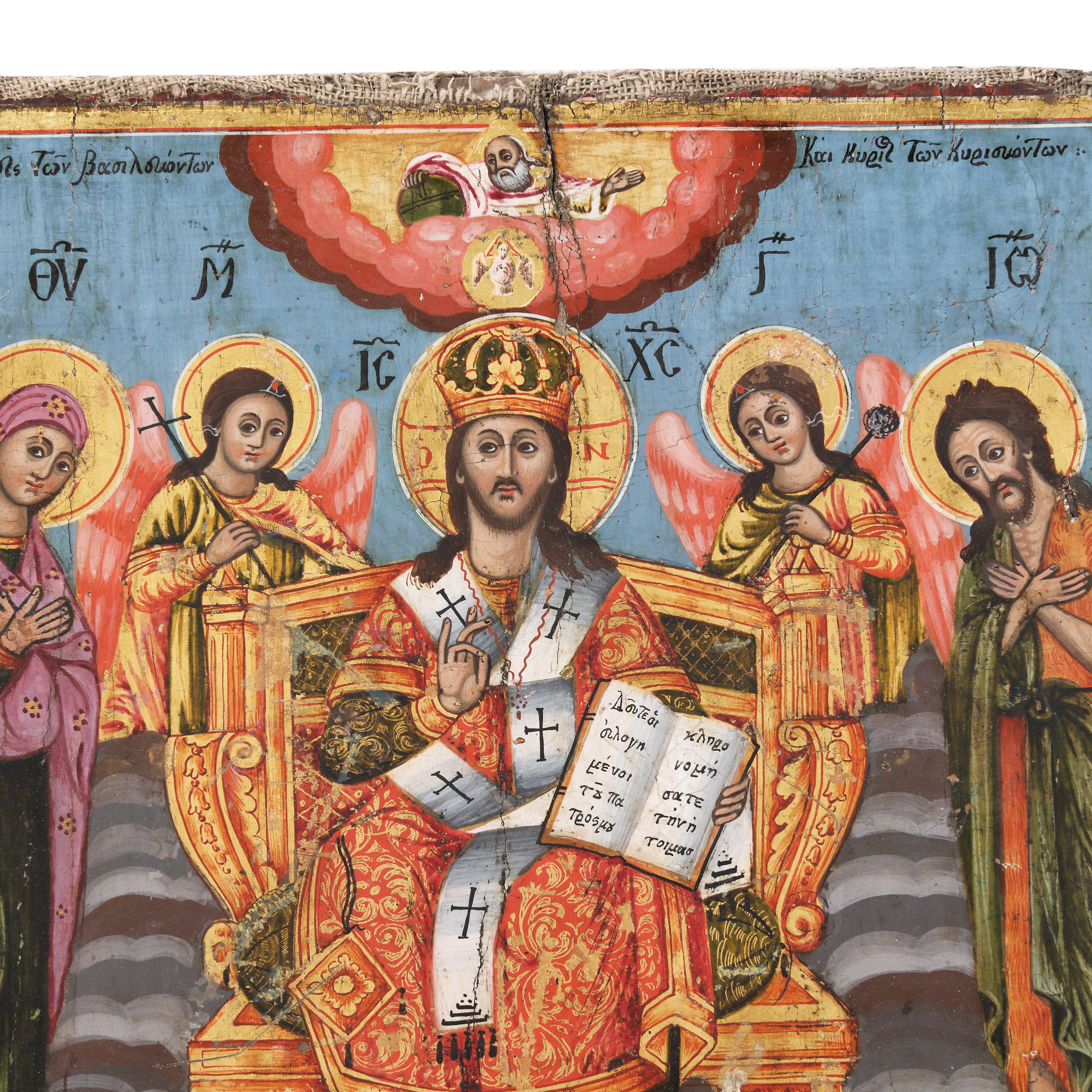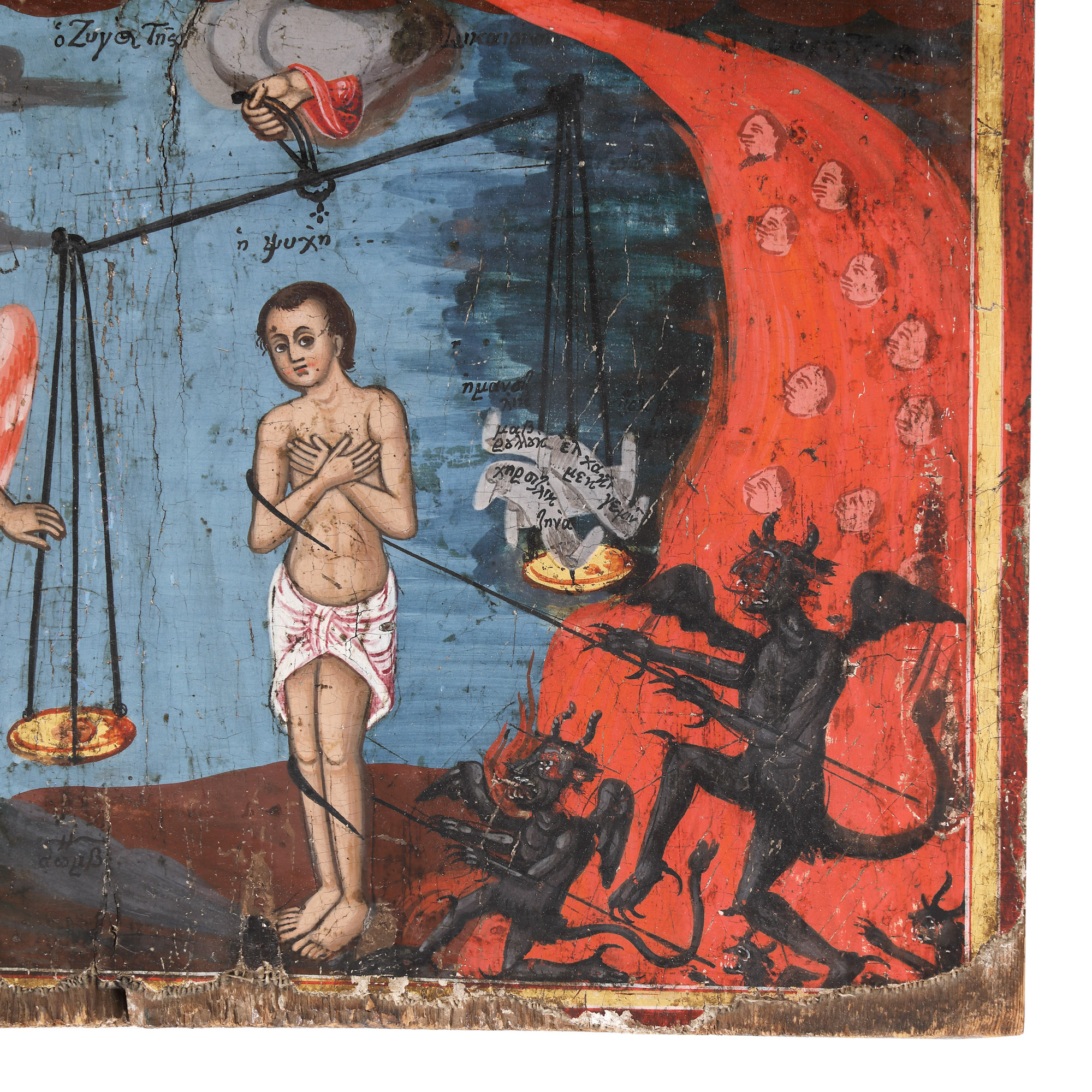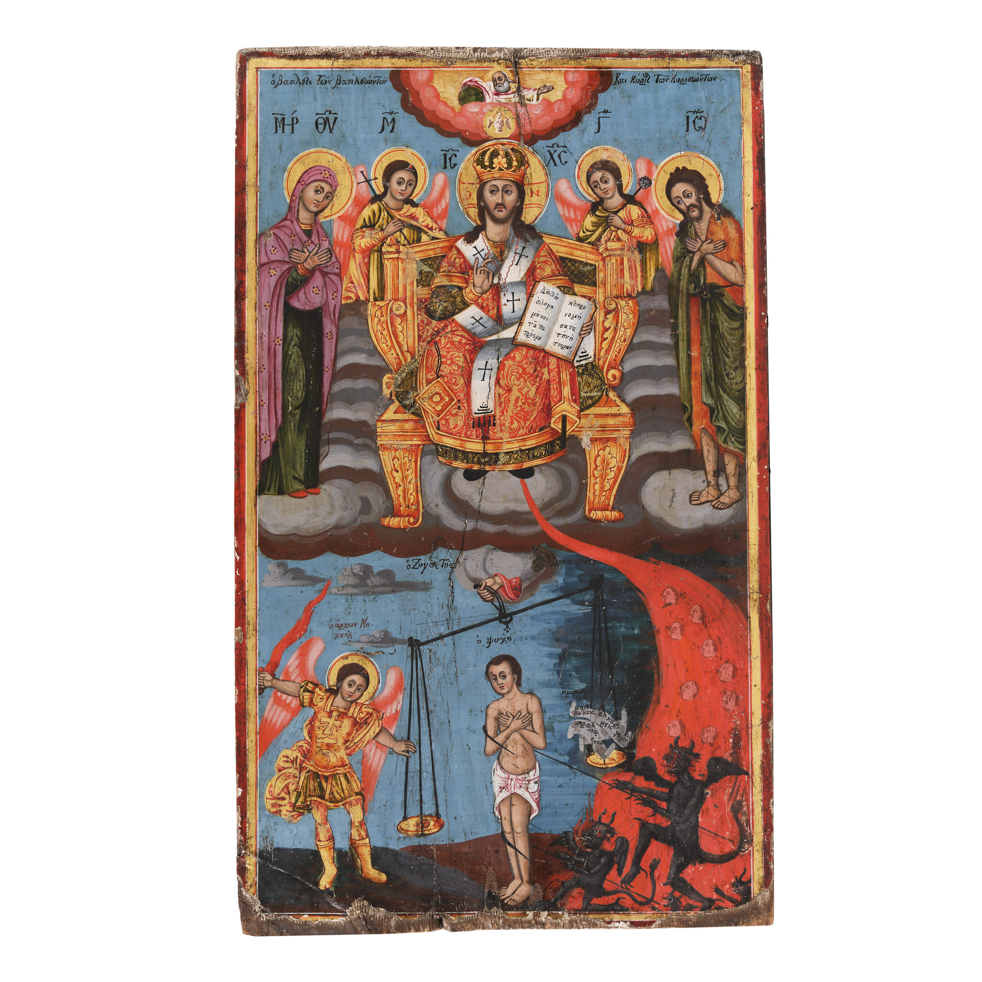 60. Icoană pe lemn, ”Deisis și Judecata”, școală grecească, 1842, piesă rară, de colecție