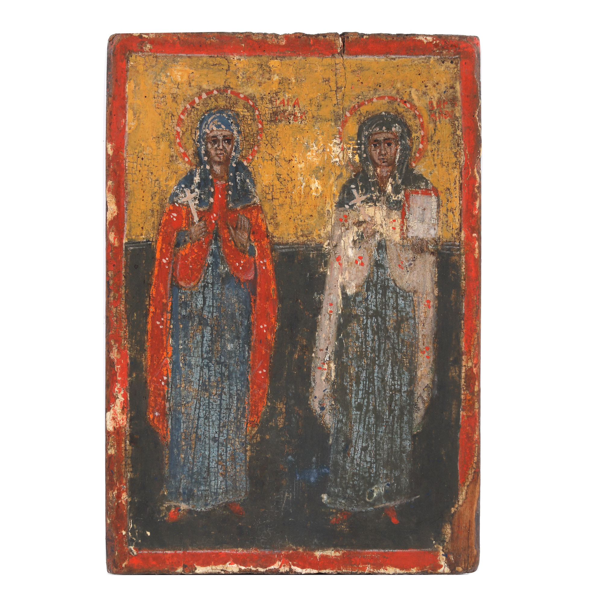 163. Icoană pe lemn, ”Două sfinte mucenițe, probabil Parascheva și Barbara”, școală românească, sfârșitul sec. XVIII - începutul sec. XIX