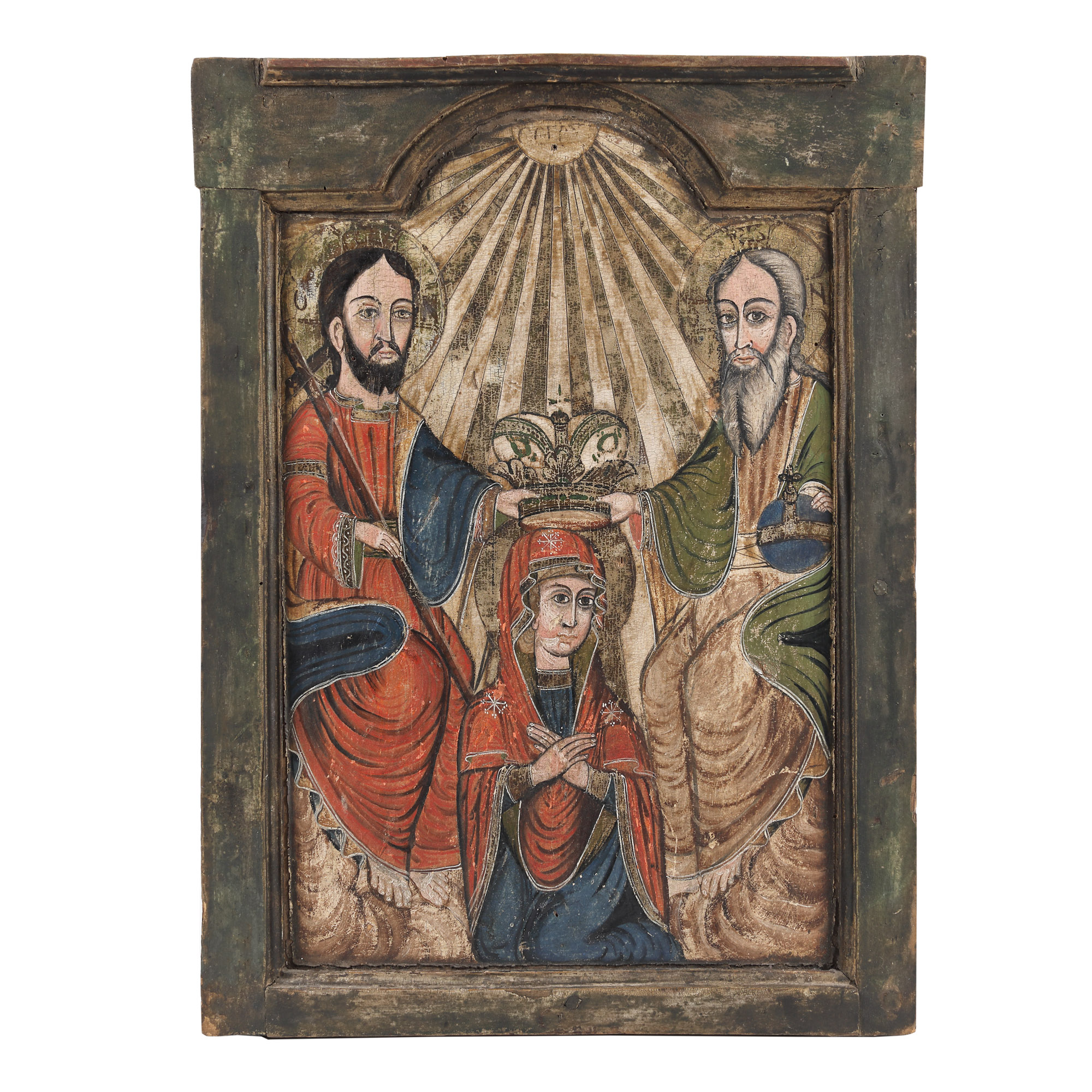 83. Icoană pe lemn, ”Încoronarea Maicii Domnului (Sfânta Troiță)”, școală transilvăneană, a doua jumătate a sec. XVIII