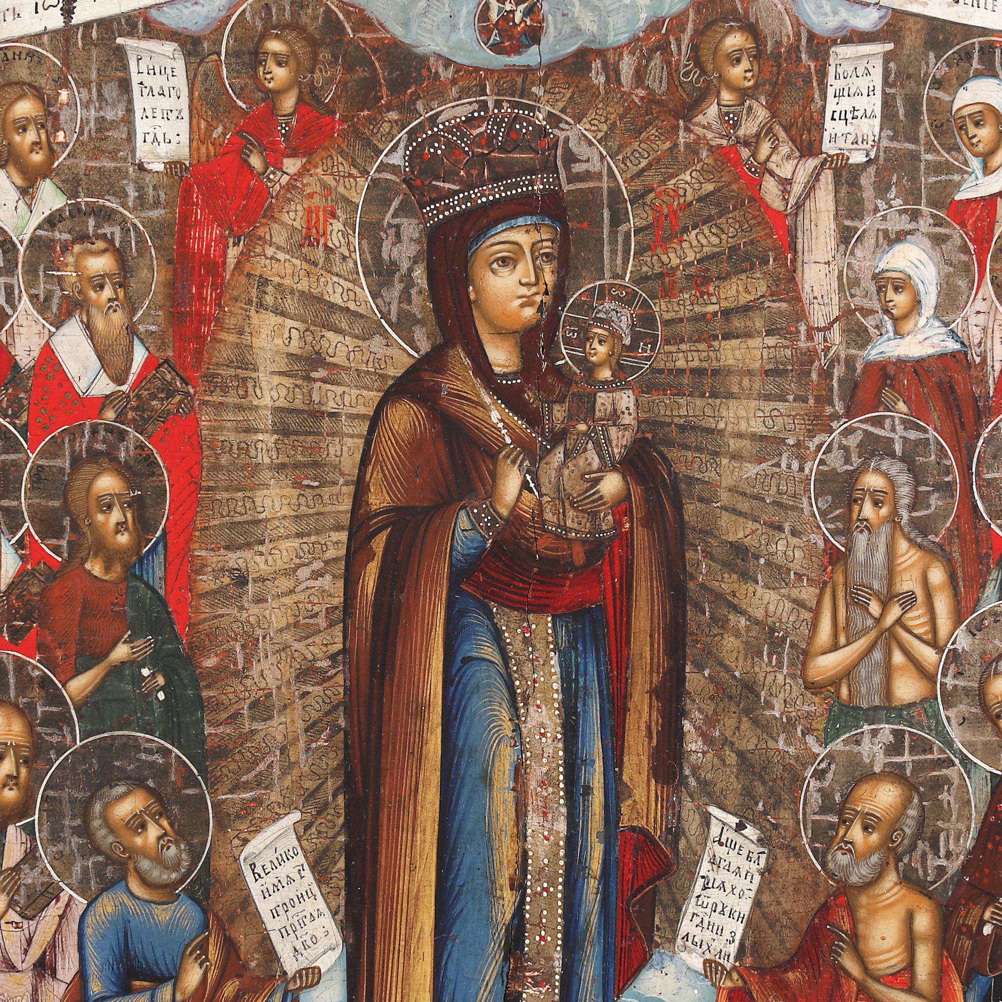 55. Icoană pe lemn, "Maica Domnului cu Pruncul - Pavăză celor îndurerați și bolnavi”, școală rusească, a doua jumătate a sec. XIX