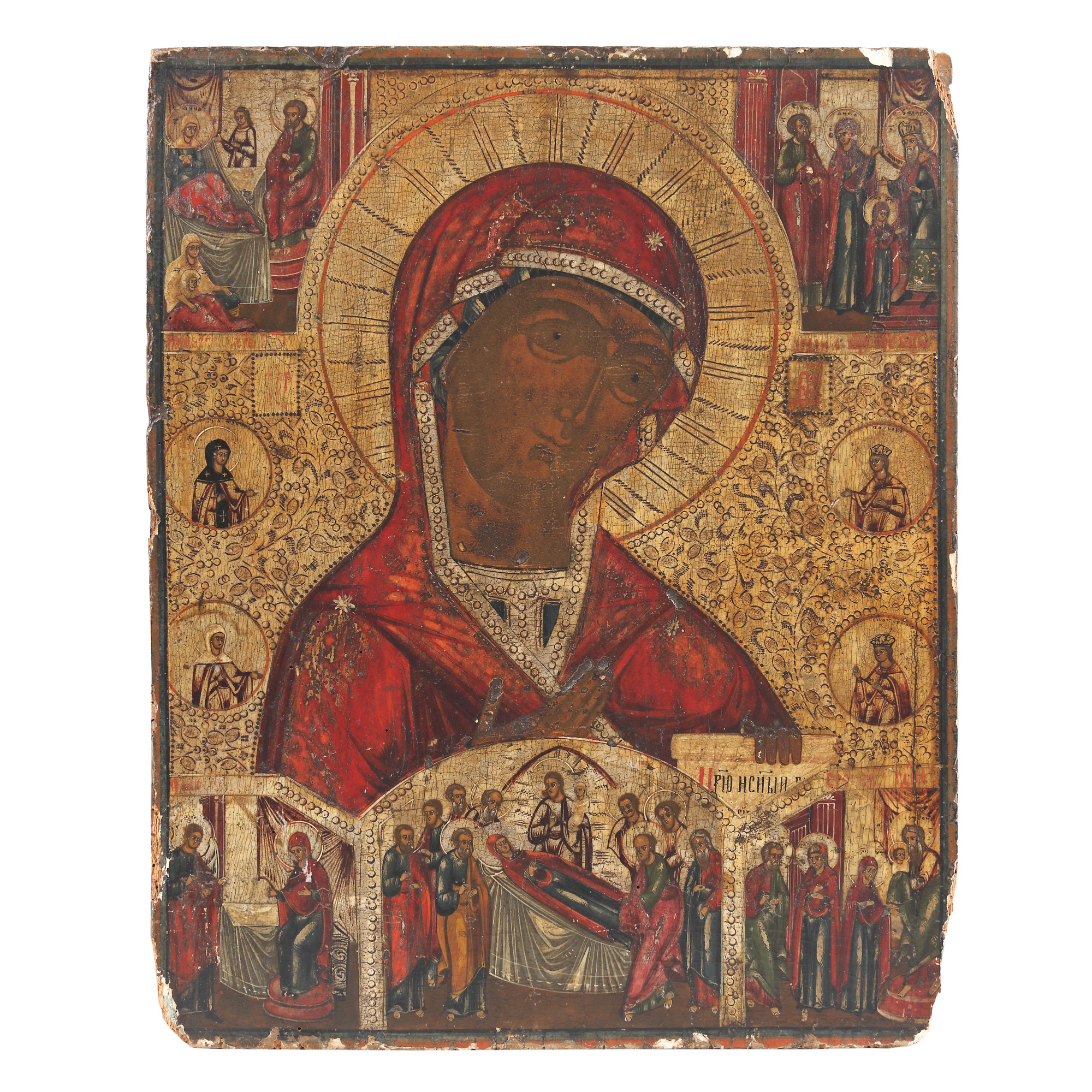 139. Icoană pe lemn, ”Maica Domnului și șcene din viața sa”, școală rusească, sfârșitul sec. XVIII- începutul sec. XIX