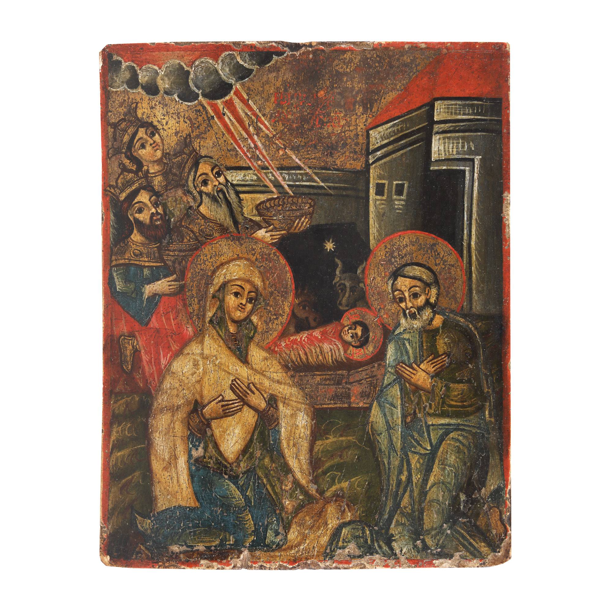 153. Icoană pe lemn, ”Nașterea Domnului”, școală românească, sfârșitul sec. XVIII - începutul sec. XIX