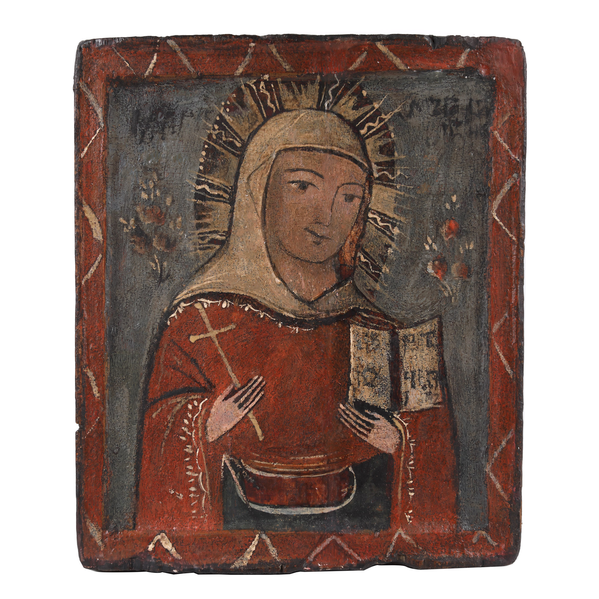 109. Icoană pe lemn, ”O sfântă muceniță (probabil Paraschiva), școală românească, sec. XIX