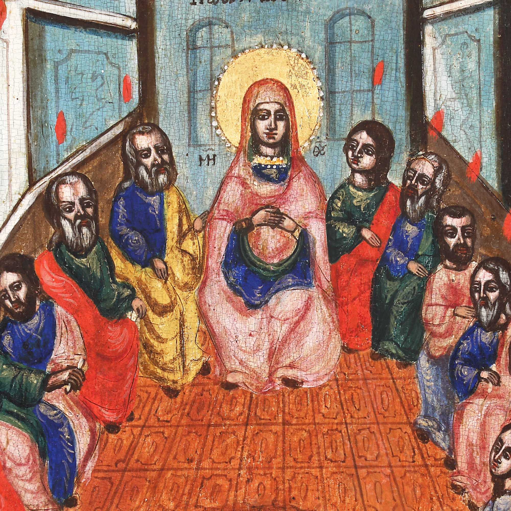 167. Icoană pe lemn, ”Pogorârea Duhului Sfânt (Duminica Rusaliilor)”, școală grecească, sec. XIX