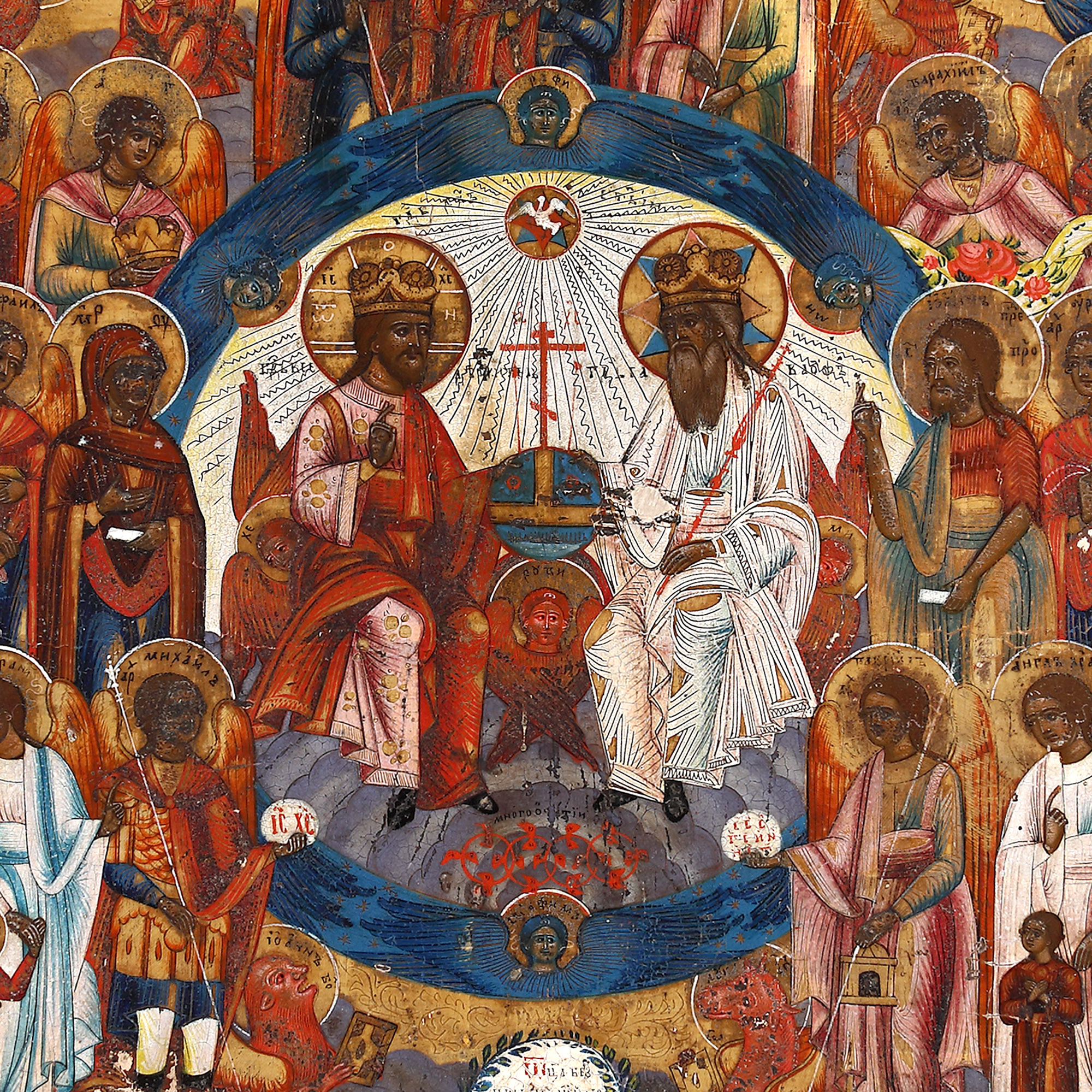 56. Icoană pe lemn, ”Sfânta Treime nou-testamentară”, școală rusească, jumătatea sec. XIX