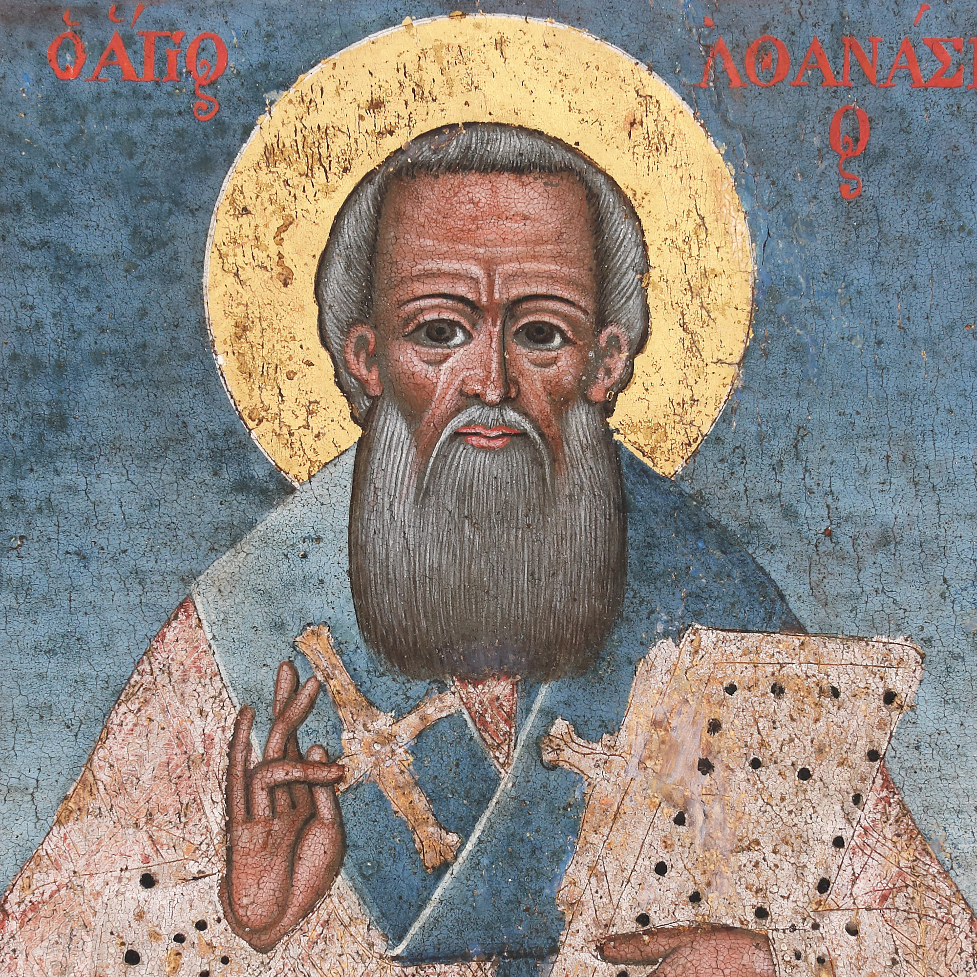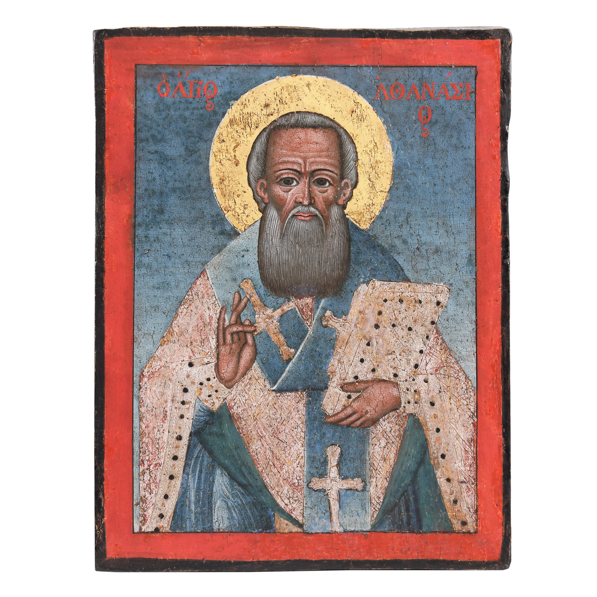 175. Icoană pe lemn, ”Sfântul Atanasie”, școală grecească, jumătatea sec. XIX
