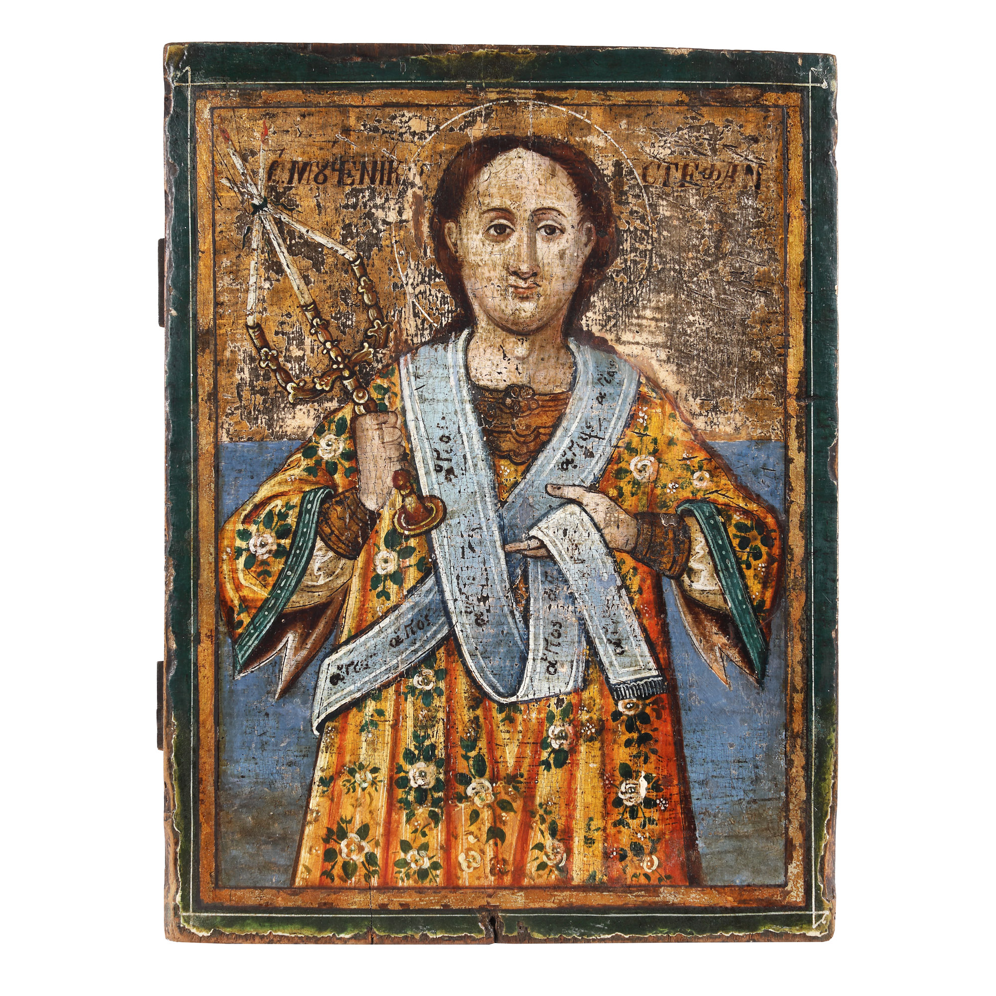 111. Icoană pe lemn, ”Sfântul Mucenic Ștefan”, școală românească, începutul sec. XIX