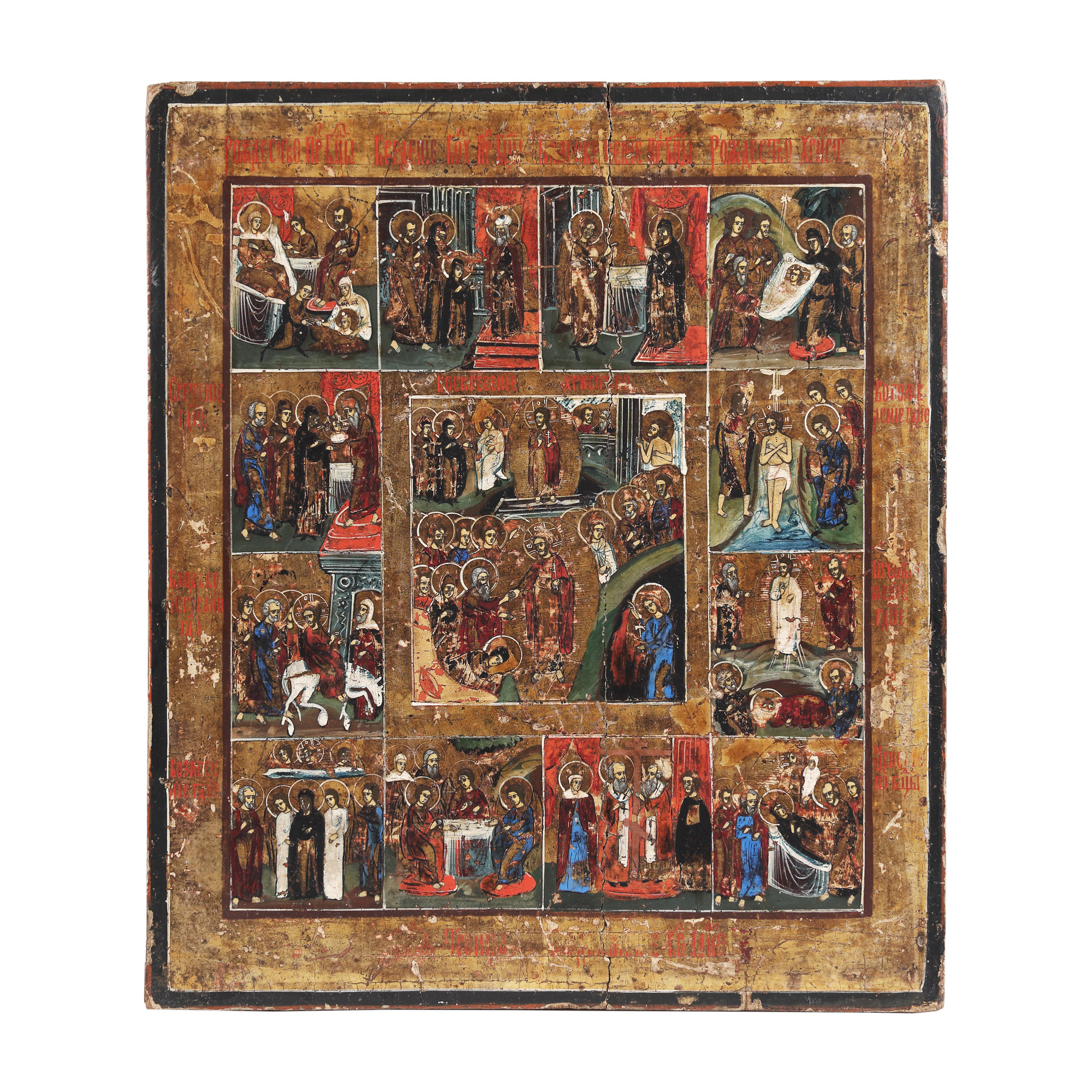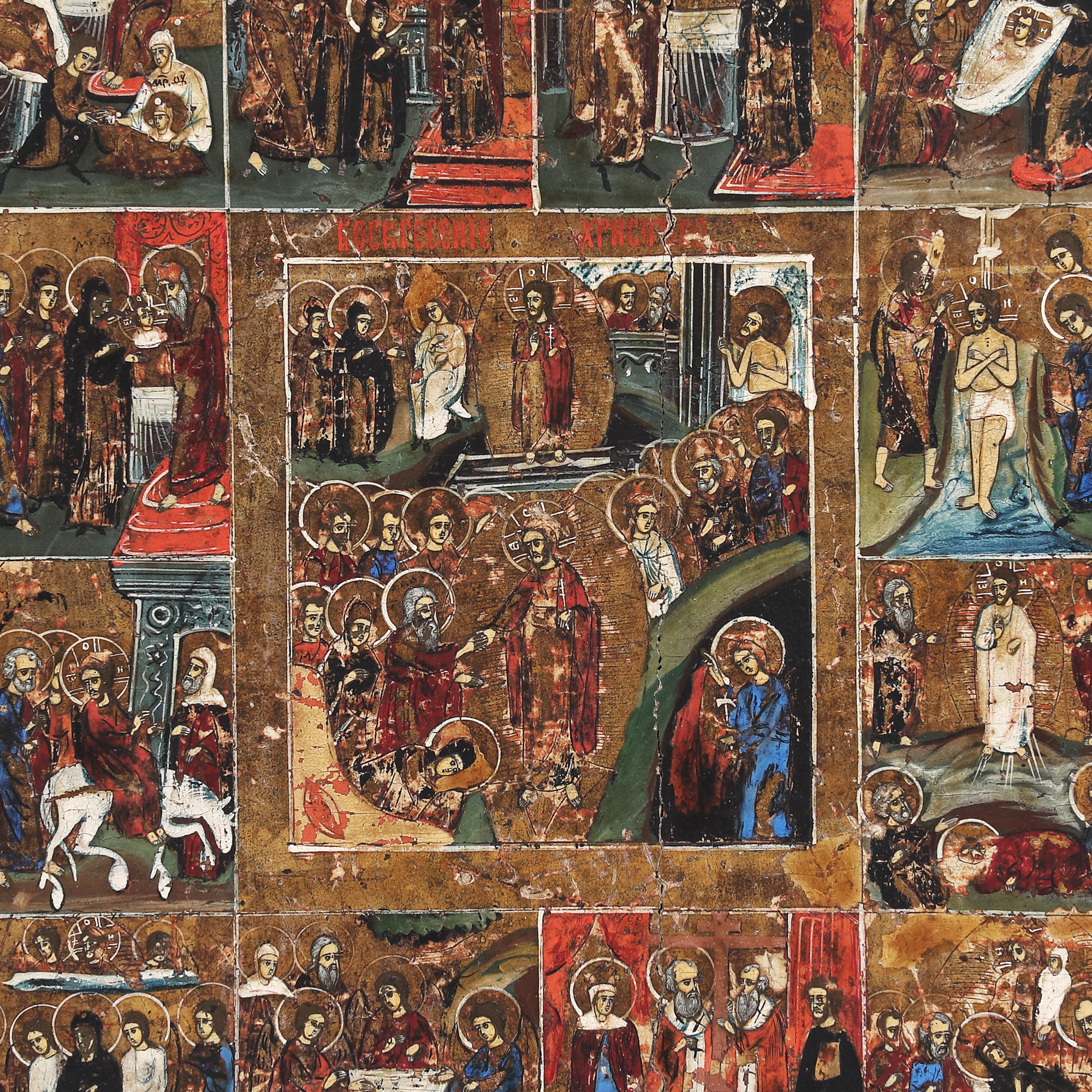 143. Icoană prăznicar pe lemn, ”Învierea Domnului și 12 scene”, școală rusească, jumătate sec. XIX