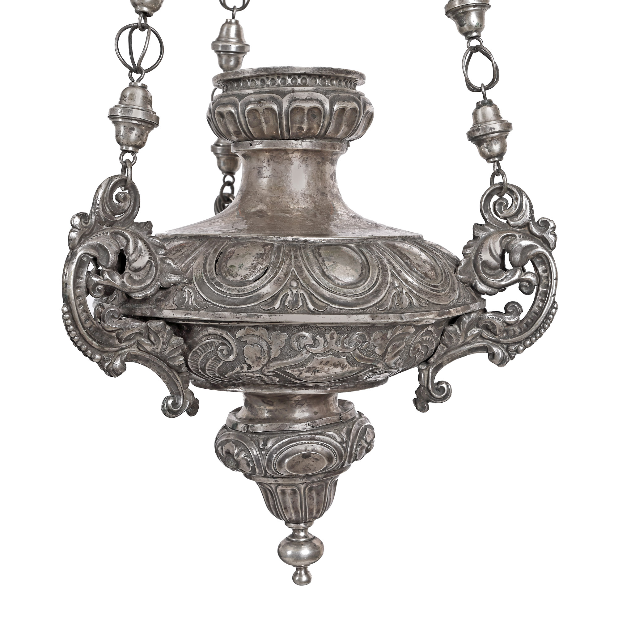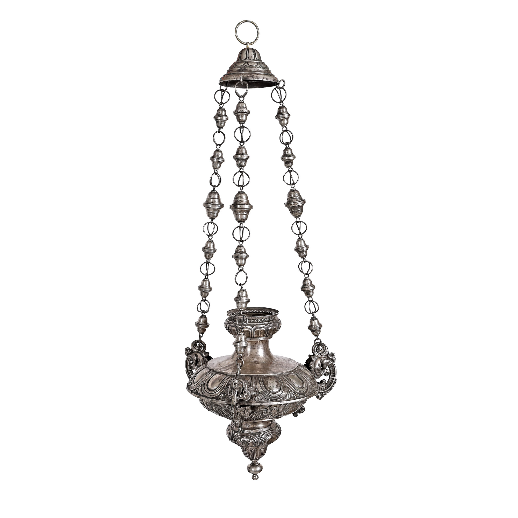 72. Impresionantă candelă din argint, decorată cu motive vegetale, cca. 1850