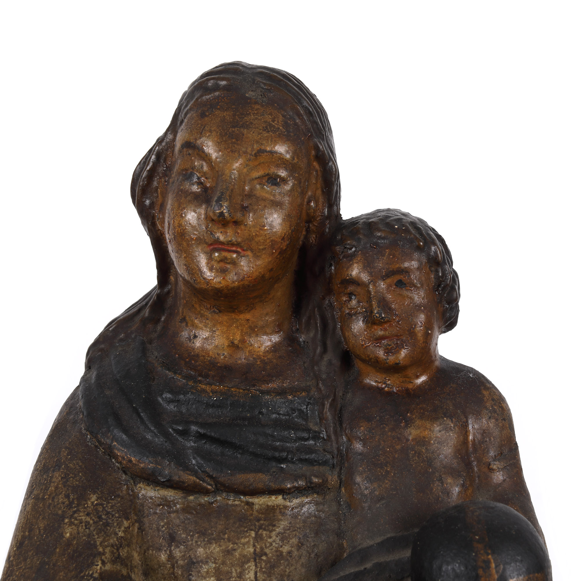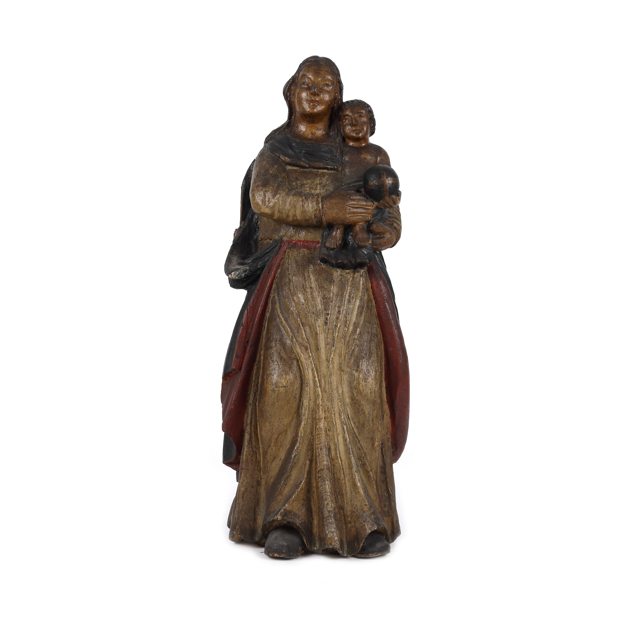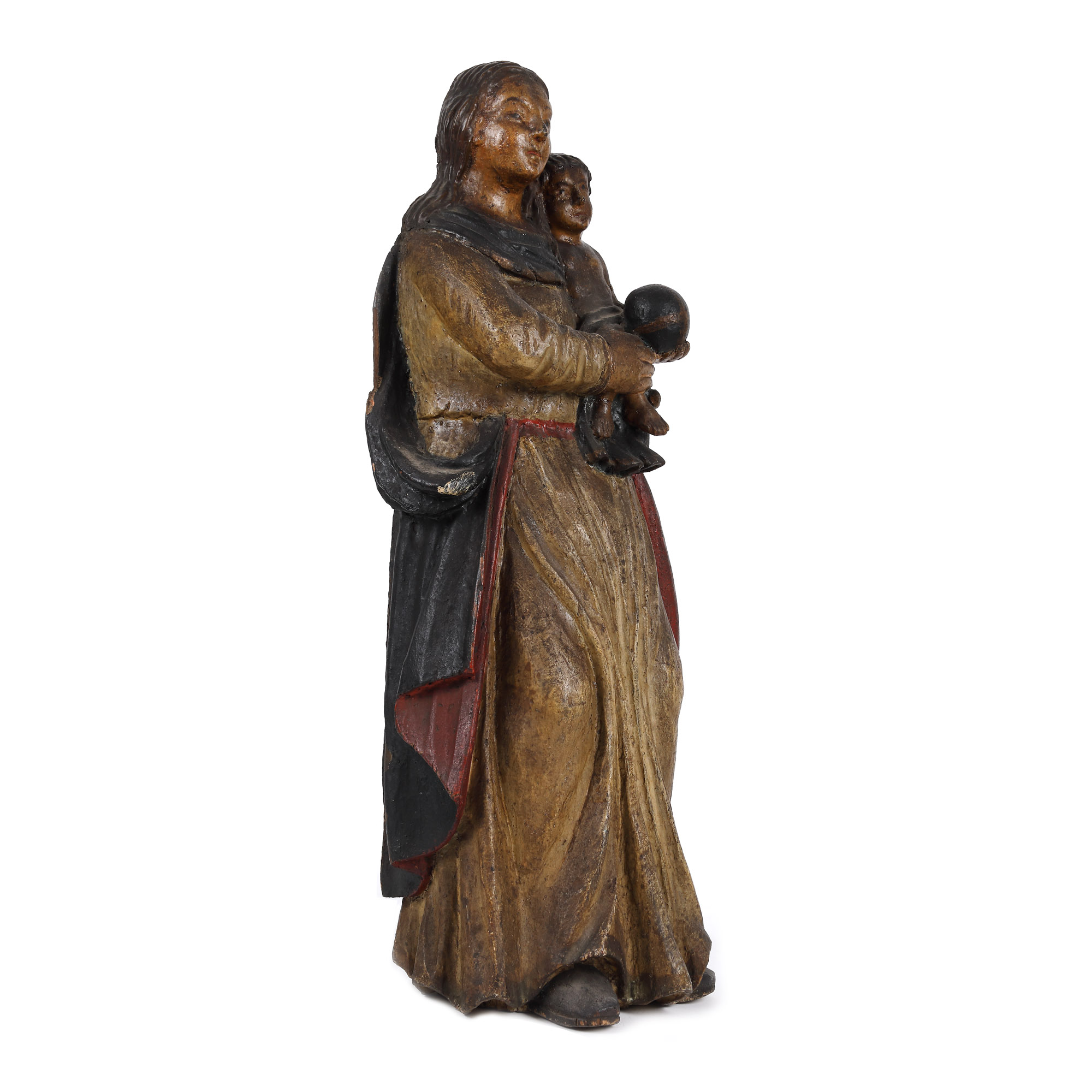 121. Statuetă din lemn, ”Fecioara Maria cu Pruncul”, atelier transilvănean, sec. XIX