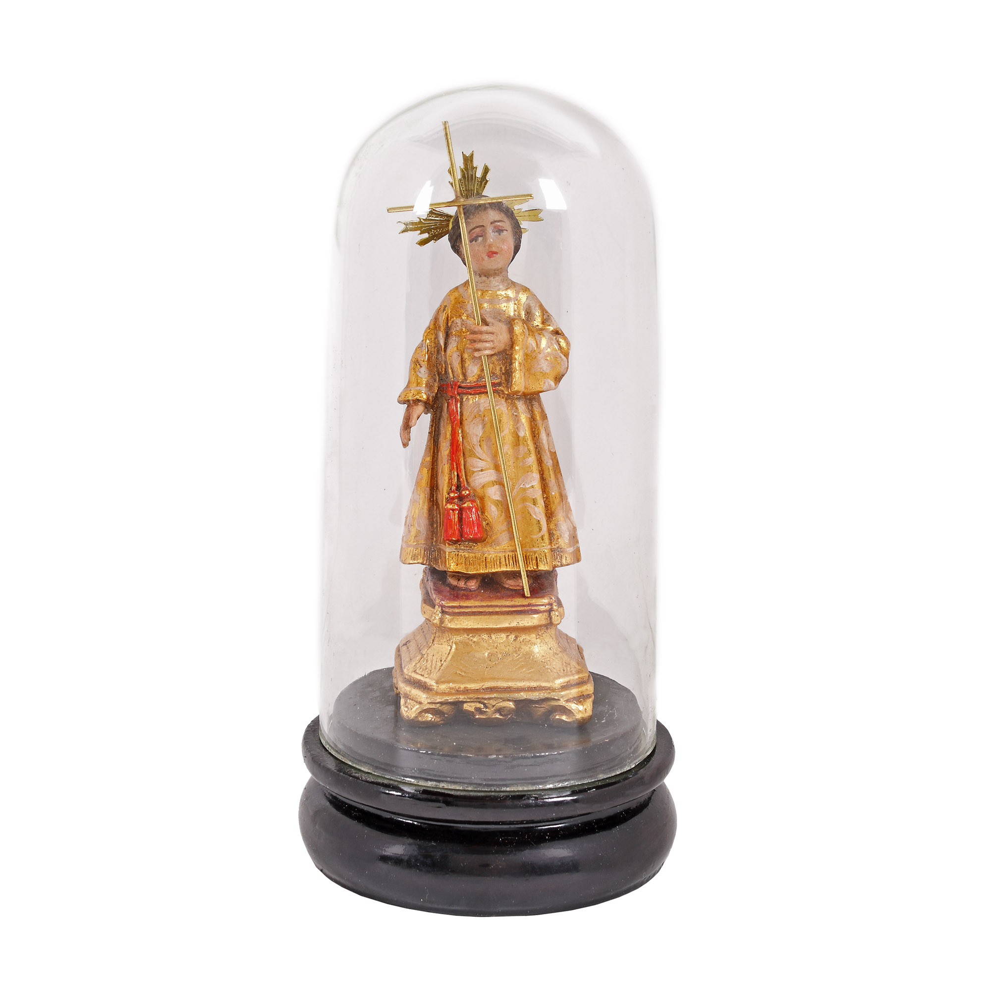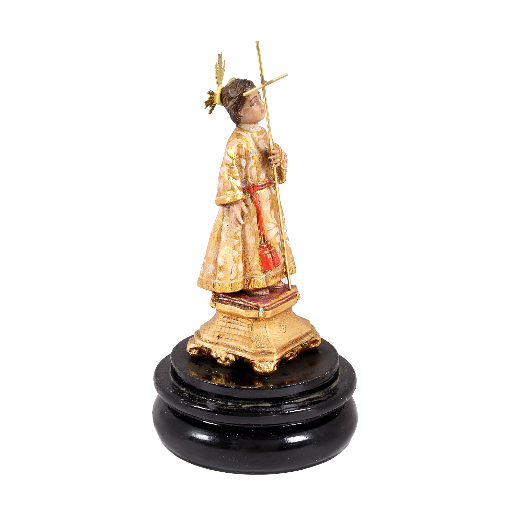 118. Statuetă din lemn, probabil ”Sfântul Ștefan”, atelier transilvănean, sec. XIX