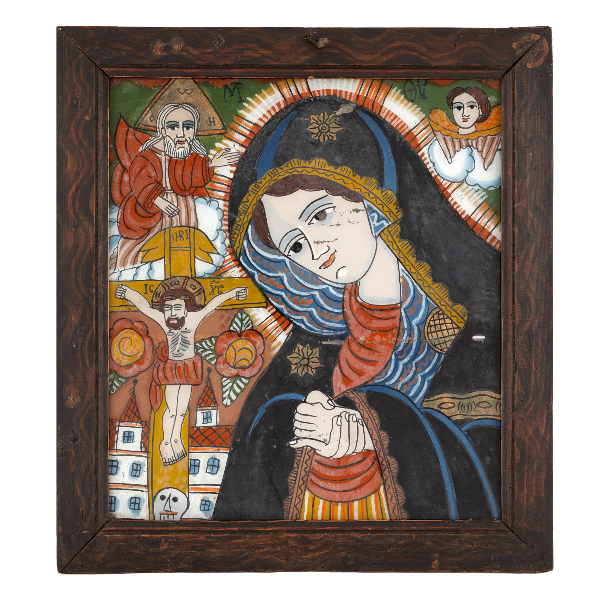 39. Icoană pe glajă, ”Maica Domnului Îndurerată", atelier din Șcheii Brașovului, a doua jumătate a sec. XIX