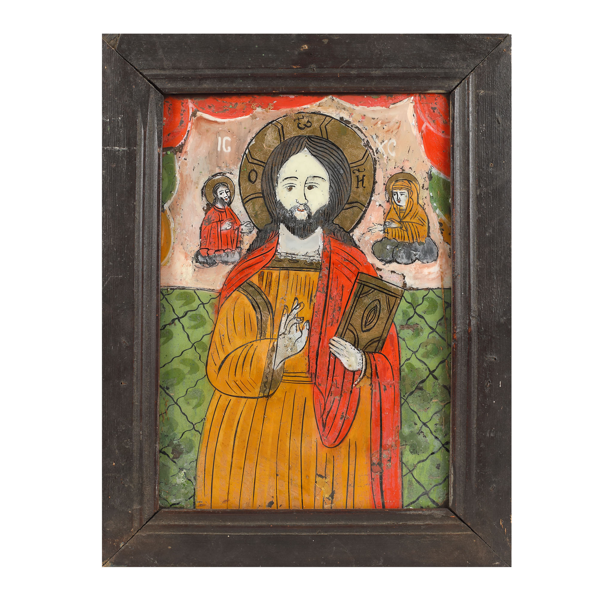 60. Icoană pe glajă, ”Deisis”, atelier din Șcheii Brașovului, sfârșitul sec. XIX