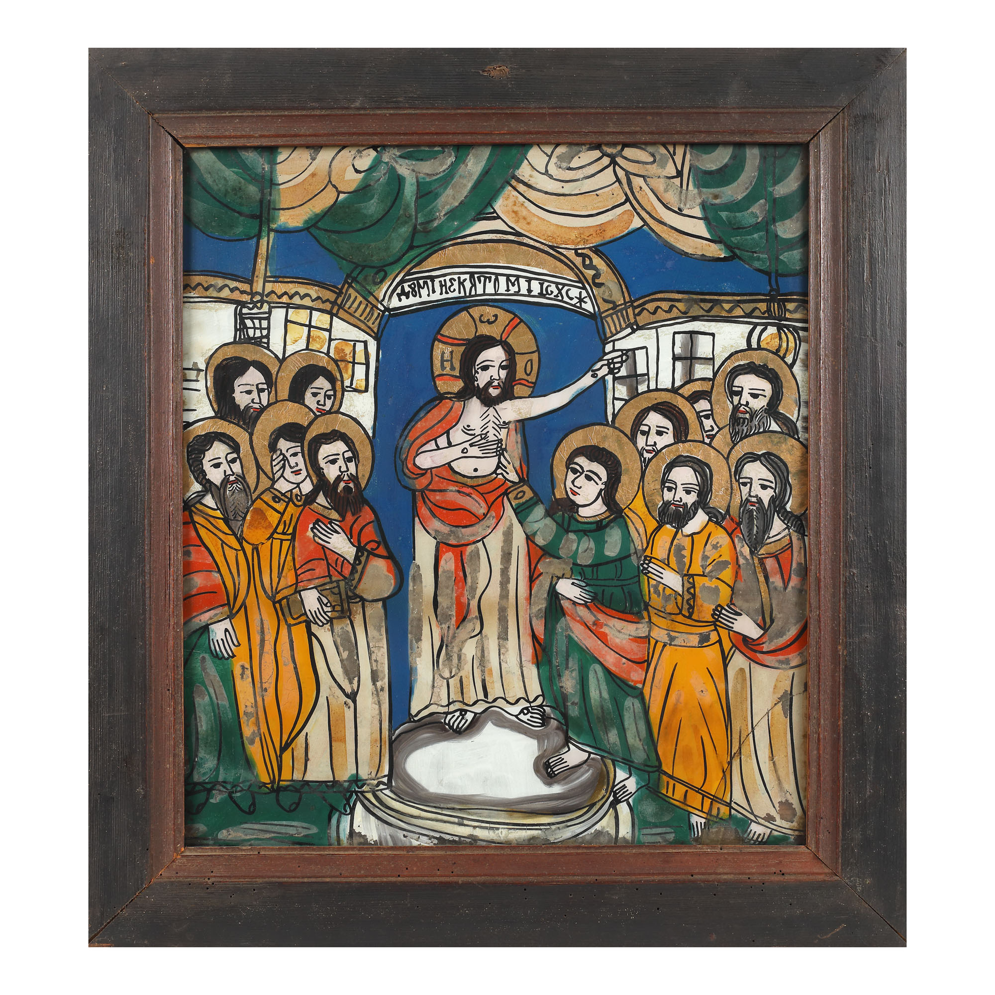 Aceasta este - la nivelul meu de cunoaștere - unică în această formă de prezentare și aparține creației de început a unui atelier a cărui producție va deveni curând una serială. Remarcabilă este lipsa elementelor decorative care în mod obișnuit suprapopulează spațiul în icoanele șcheiene, precum și redarea corectă a textului cu denumirea scenei. Stare de conservare: relativ bună, prezintă o fisură în colțul dreapta-jos.