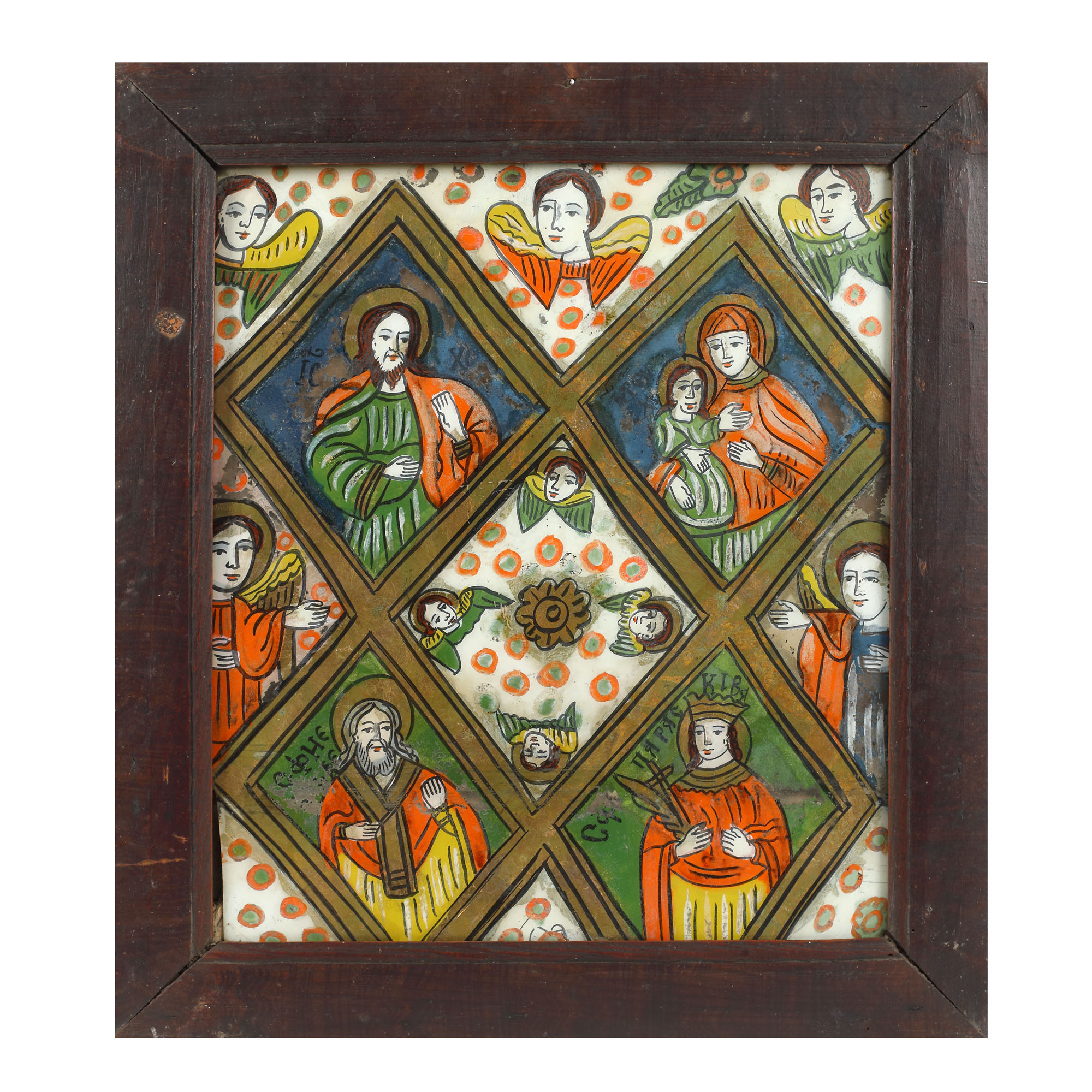 50. Icoană pe glajă, ”Masa Raiului”, ramă băițuită, cu șforț, atelier din Șcheii Brașovului, a doua jumătate a sec. XIX