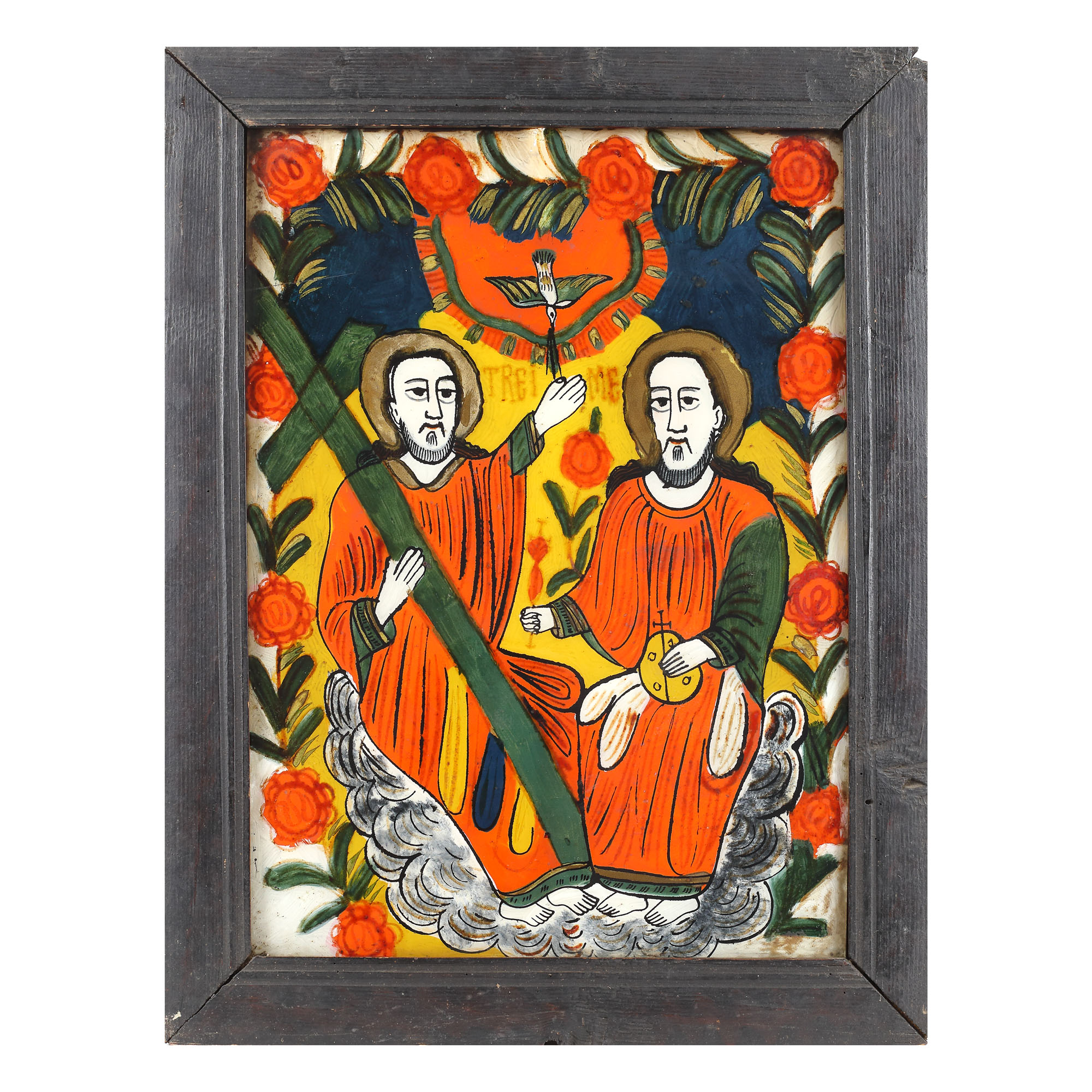 62. Icoană pe glajă, "Sfânta Treime", atelier din Gherla, începutul sec. XX