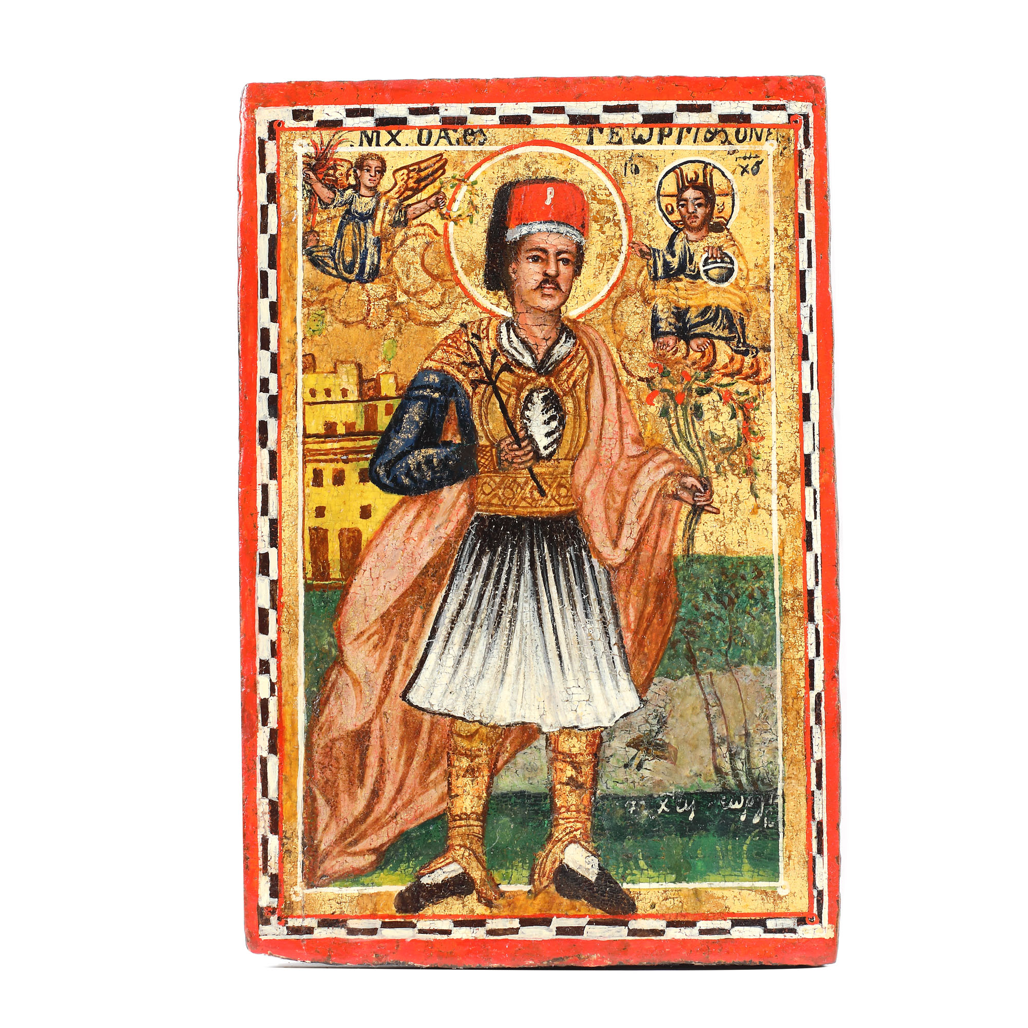 64. Icoană pe lemn, ”Sfântul Gheorghe cel nou”, școală grecească, a doua jumătate a sec. XIX