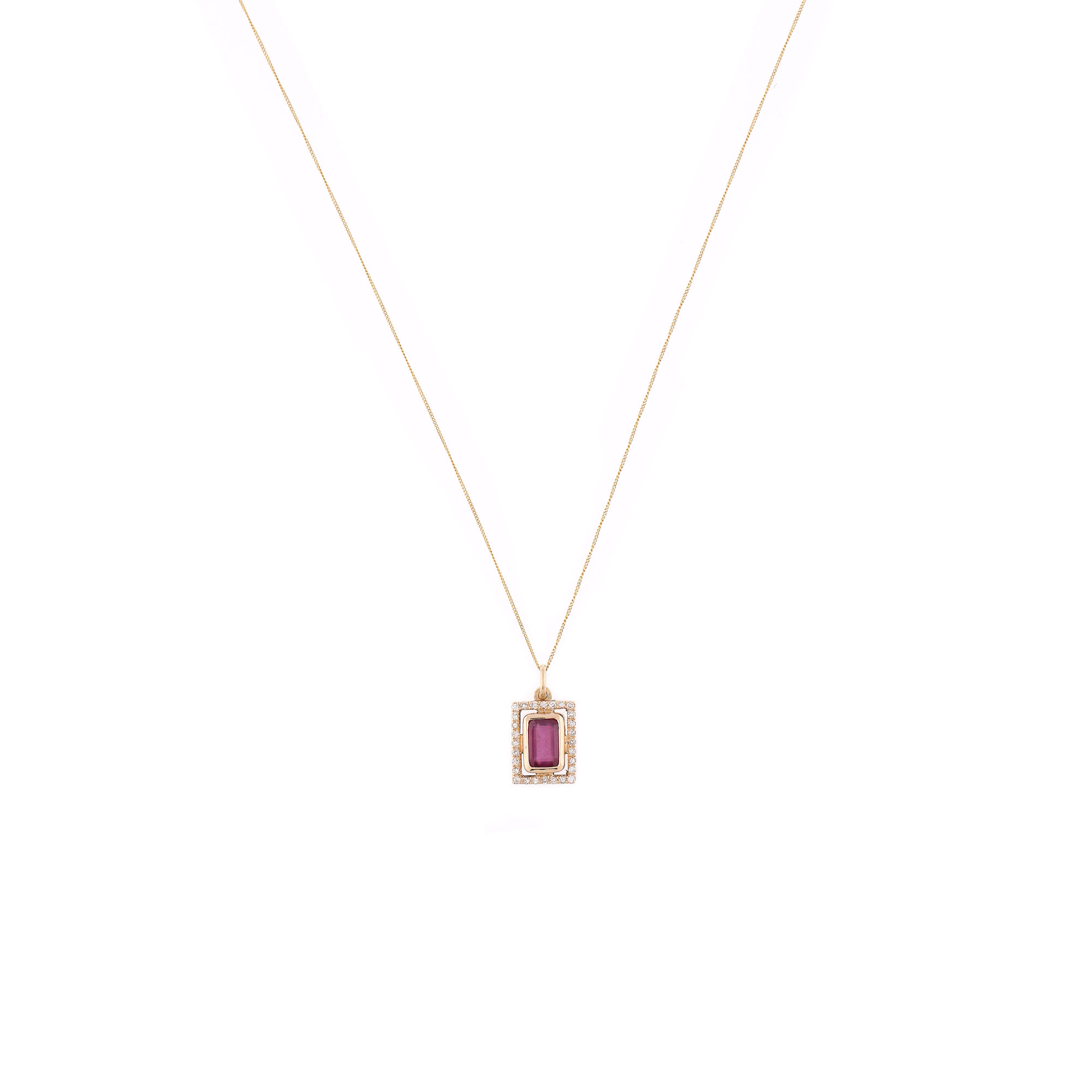 58. Lanț cu pandantiv din aur, decorat cu rubin și diamante