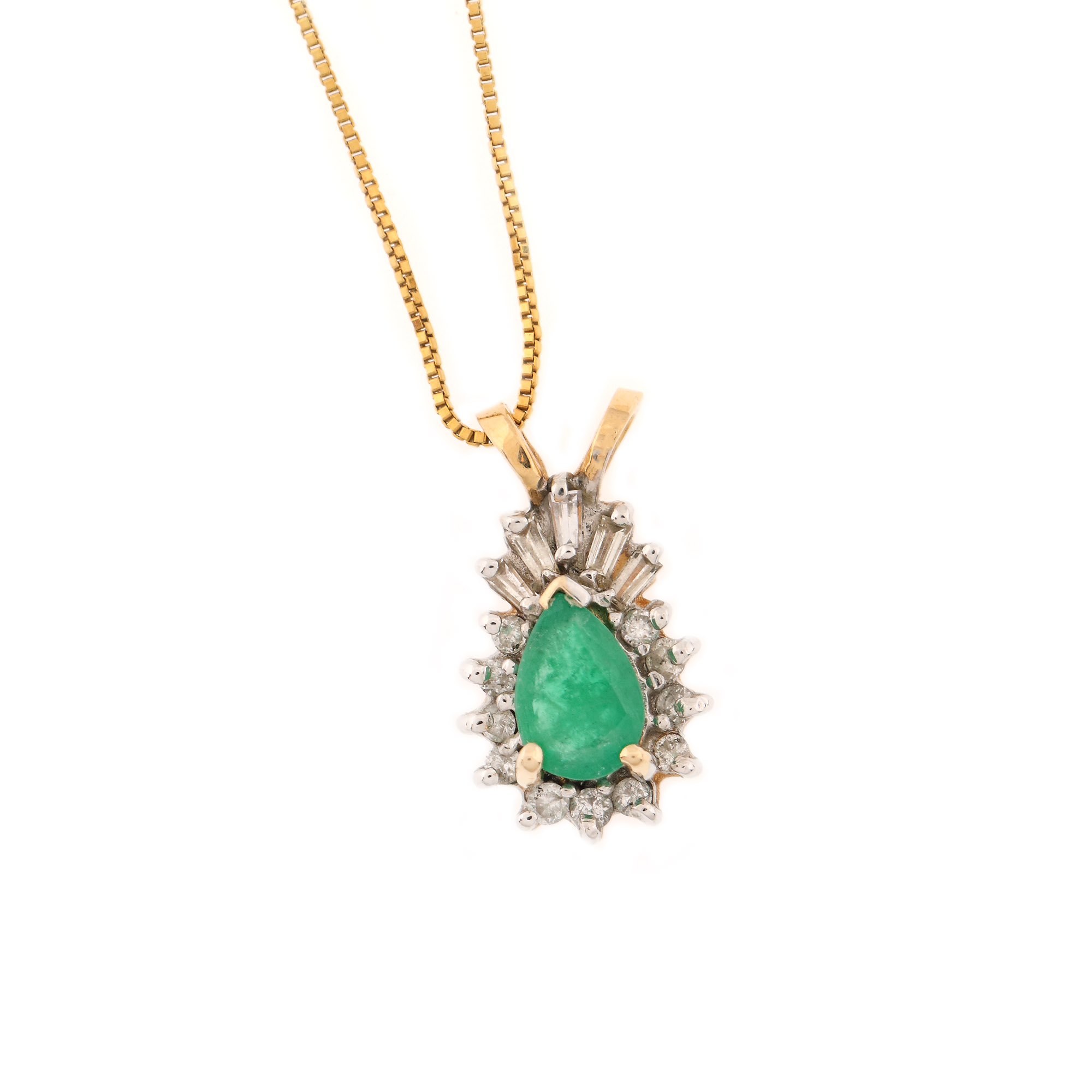44. Lanț cu pandantiv din aur, decorat cu smarald și briliante