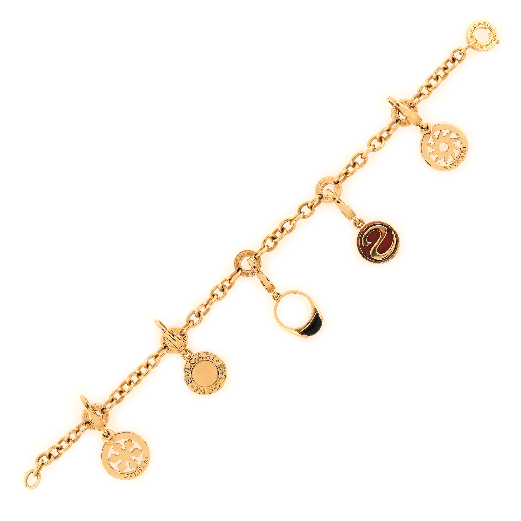 99. Brățară Bvlgari din aur, cu charm-uri detașabile, ornată cu email