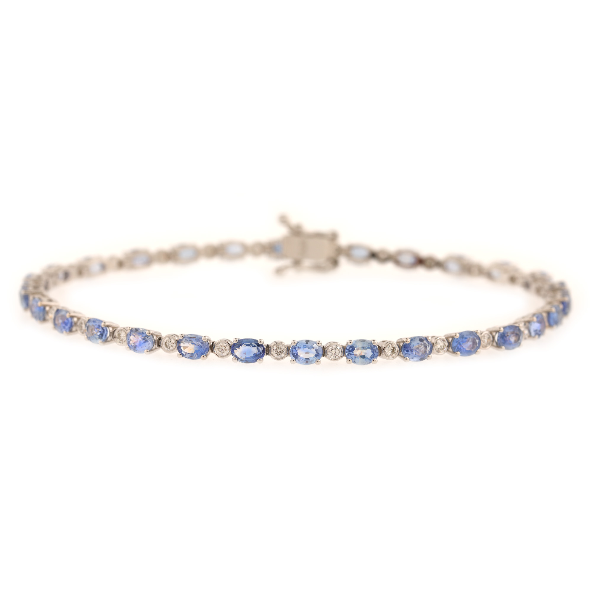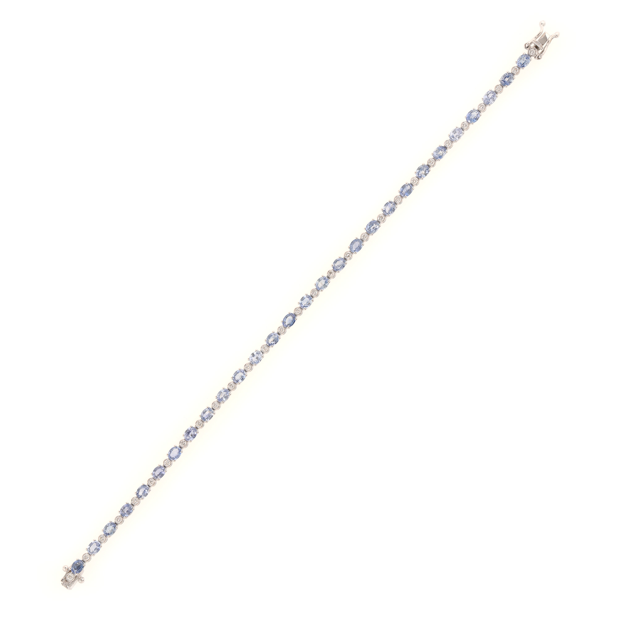 114. Brățară din aur alb, decorată cu alternanță de safire și diamante