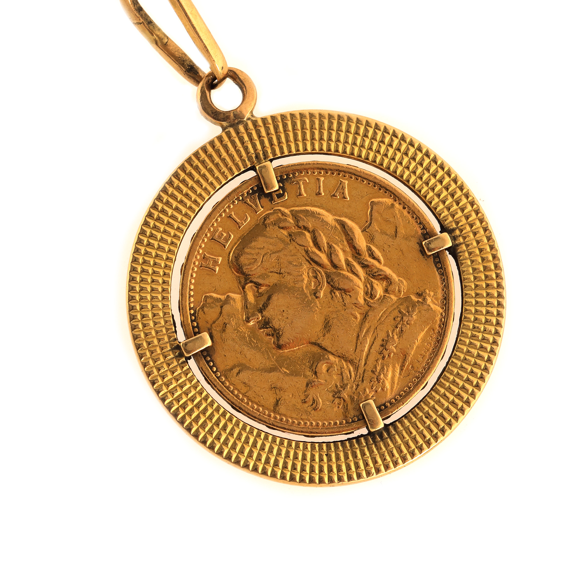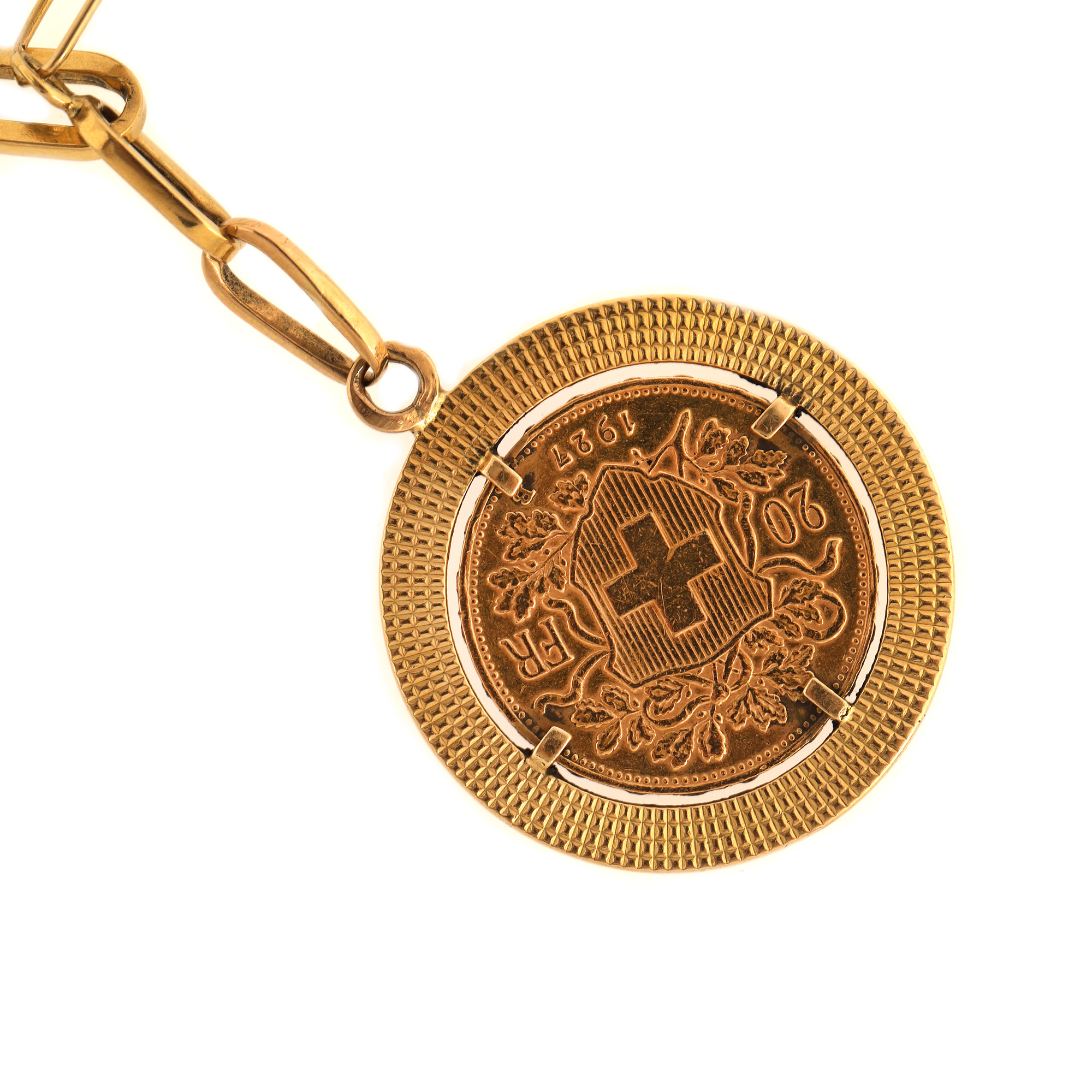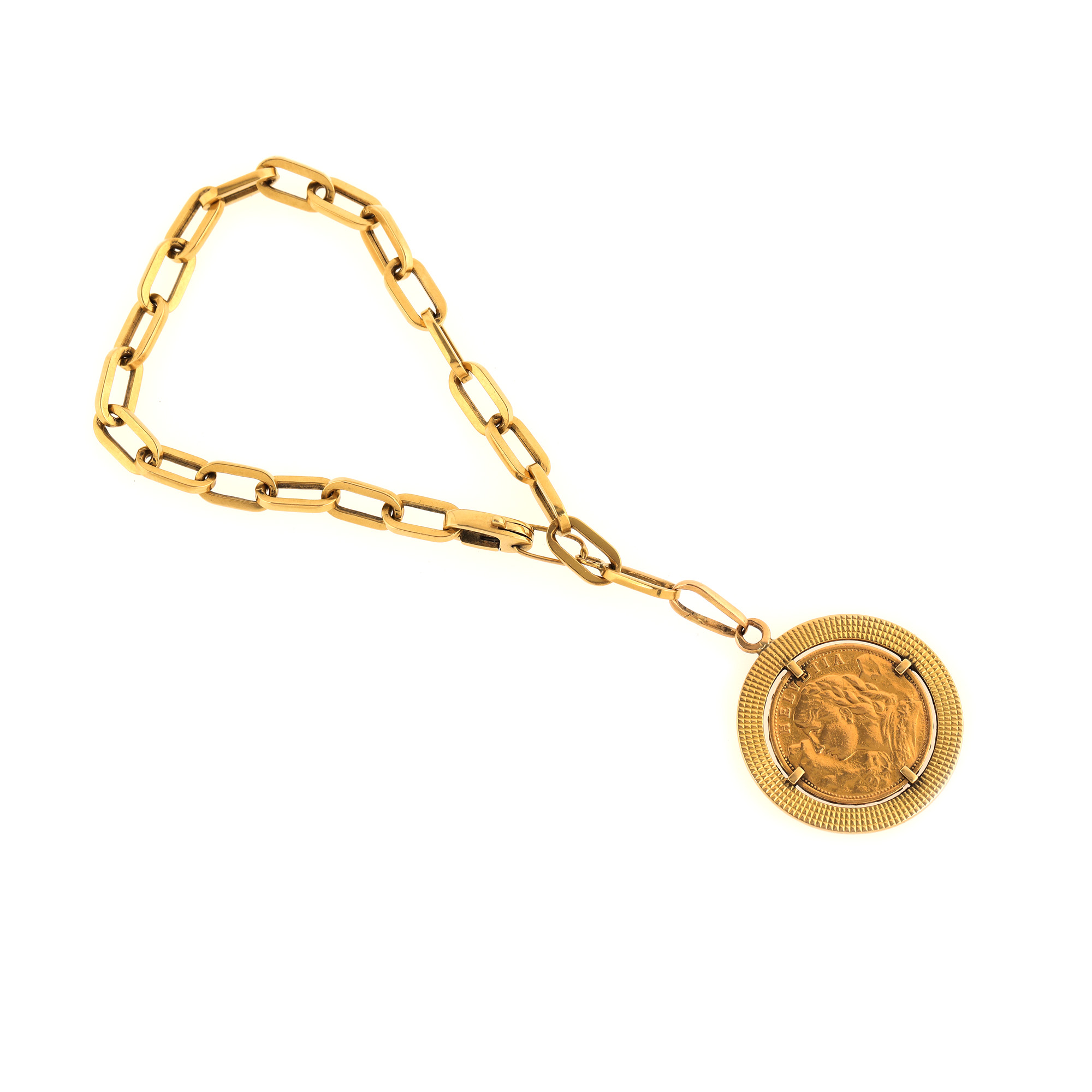 152. Brățară din aur, ornată cu moneda din aur 20 franci elvețieni Helvetia 1927
