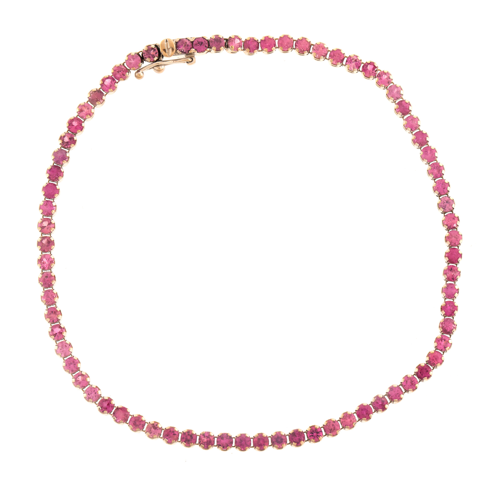 72 safire rotund fațetate, culoare roz, claritate SI, cca. 3,60 ct.
