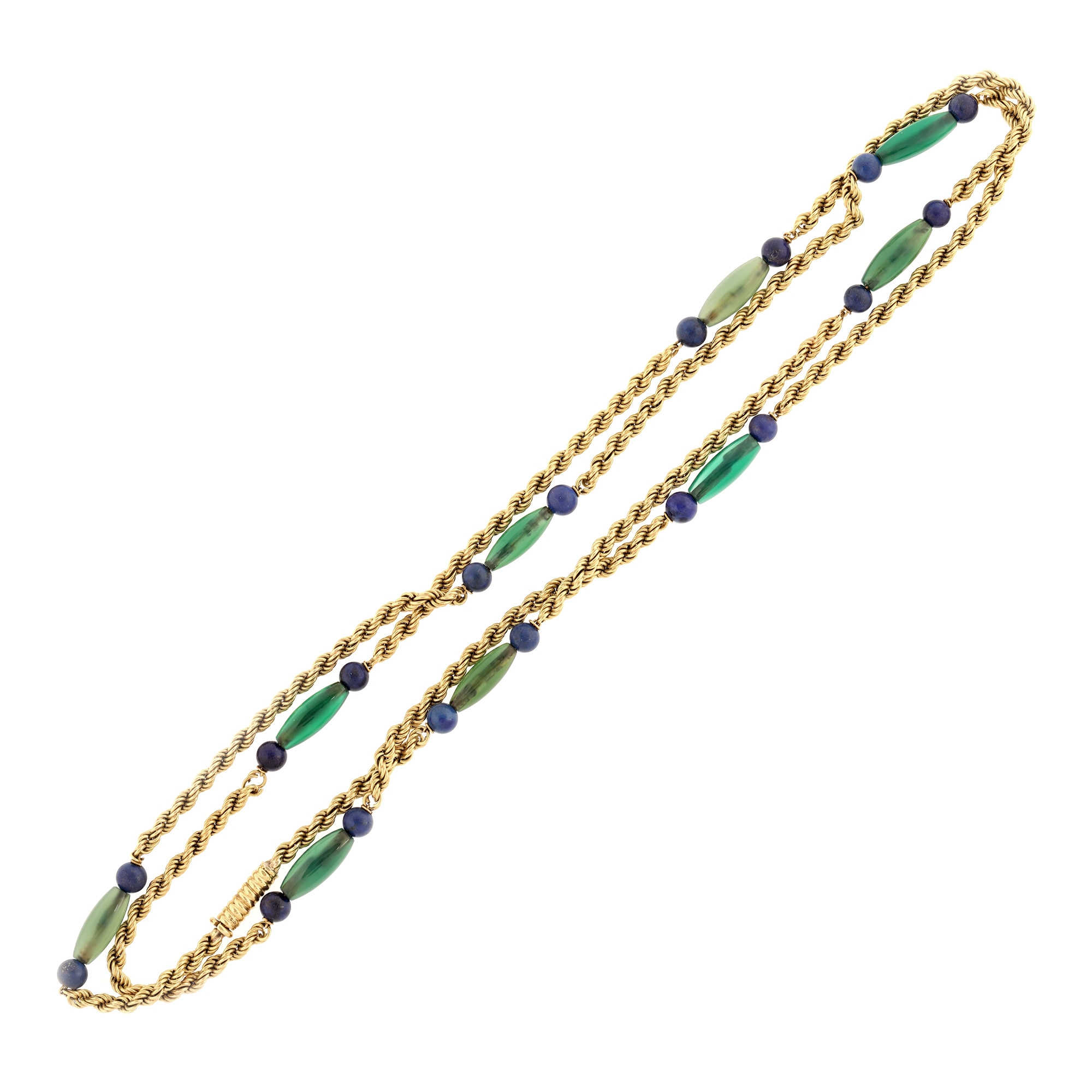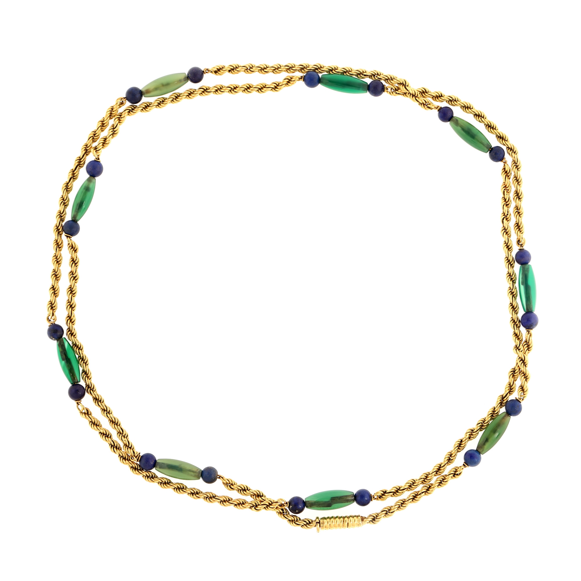 77. Colier Boucheron din aur, decorat cu agat și lapis lazuli, provine din colecția Marinei Dimitropoulos