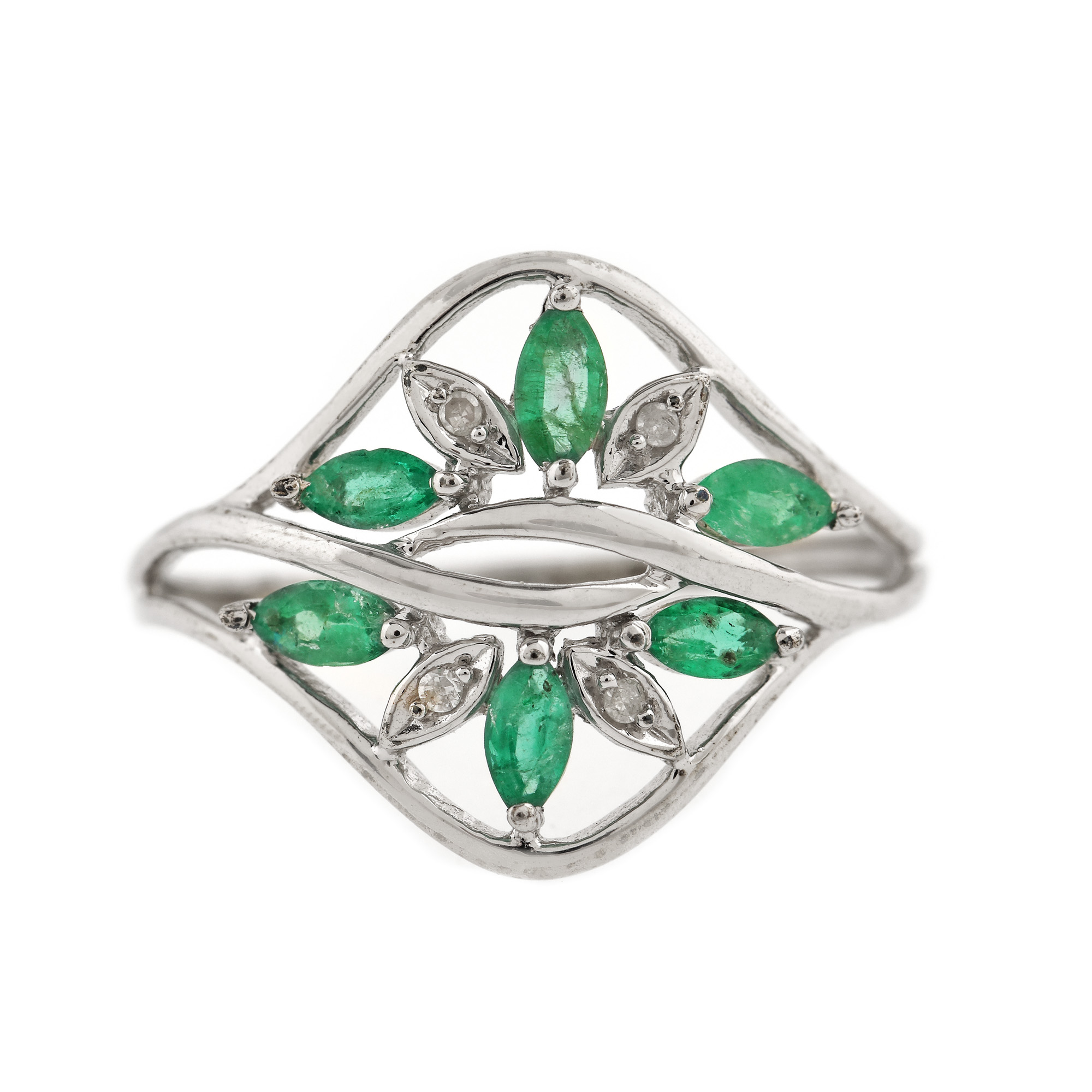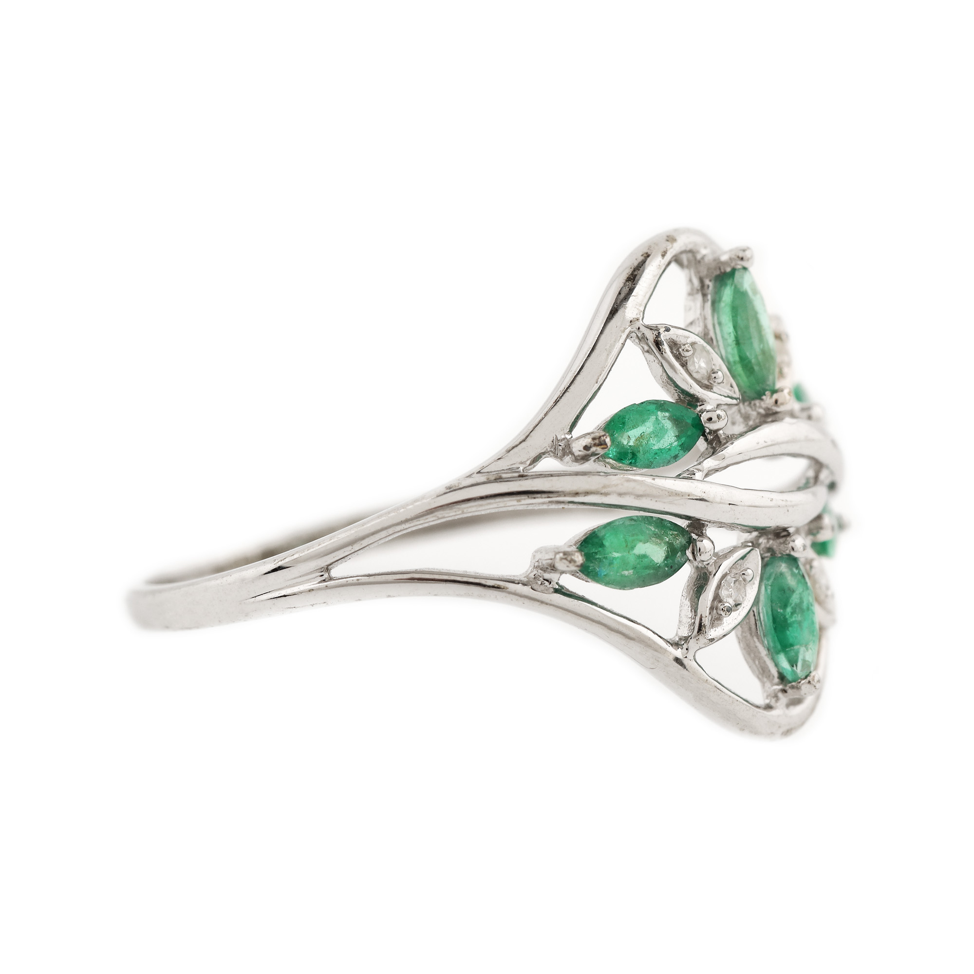 117. Inel din aur alb, decorat cu smaralde marchiză și diamante
