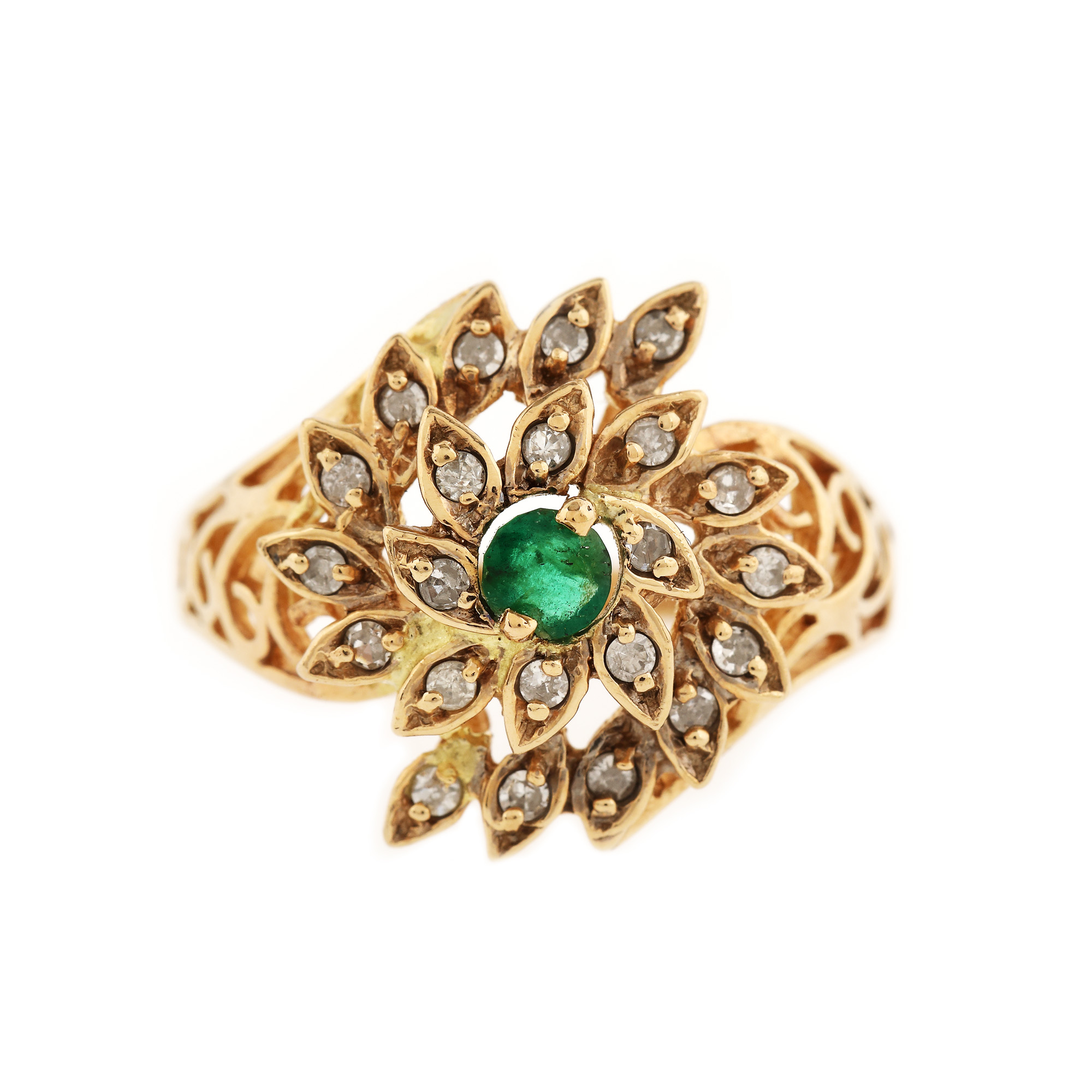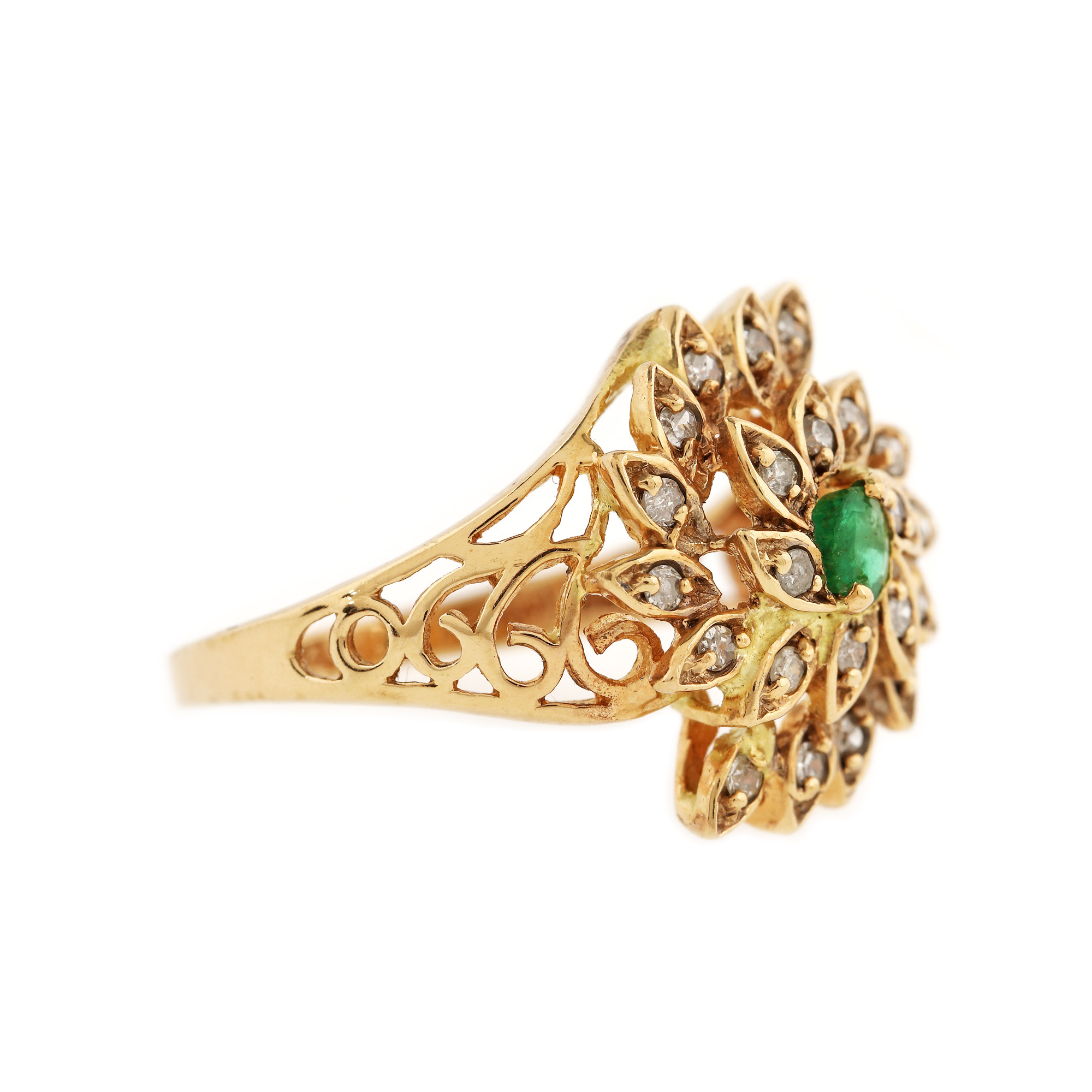 115. Inel din aur, decorat central cu smarald în anturaj de diamante