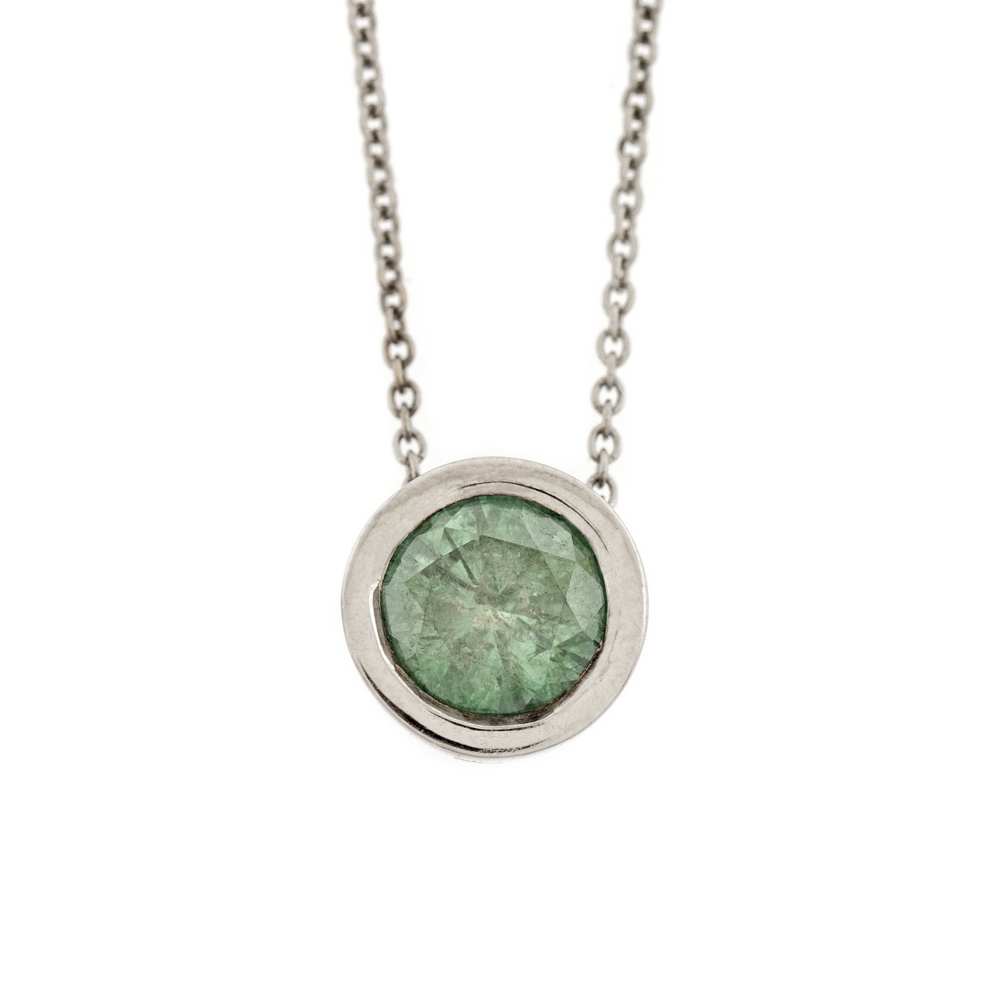 116. Lanț cu pandantiv Chateau din aur alb, decorat cu diamant verde