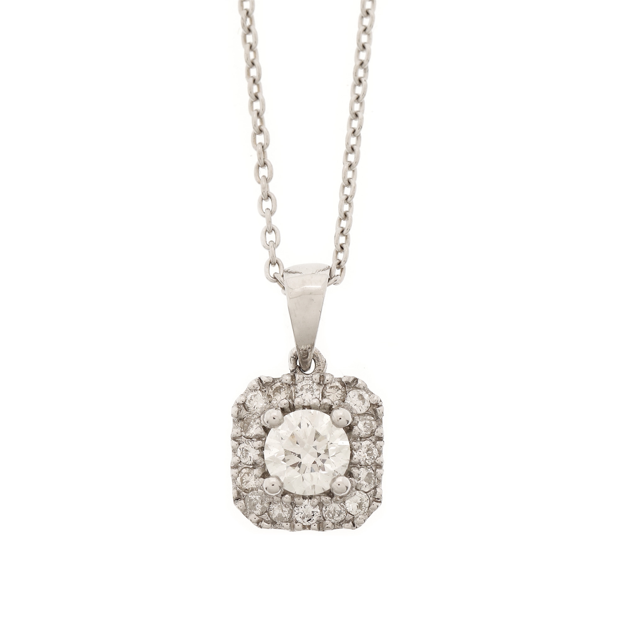 167. Lanț cu pandantiv din aur alb, decorat cu diamante