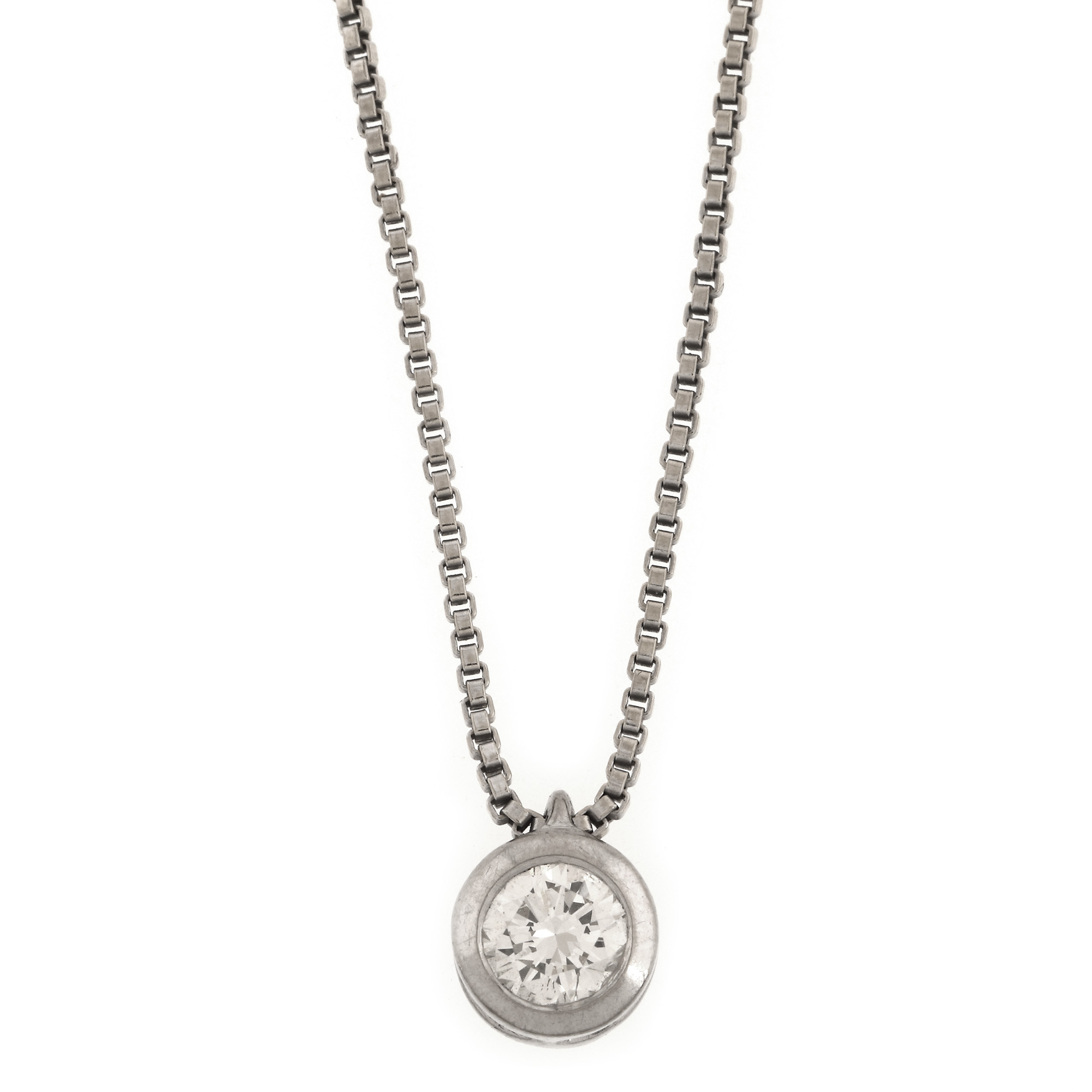 175. Lanț cu pandantiv din aur alb, decorat cu un diamant briliant