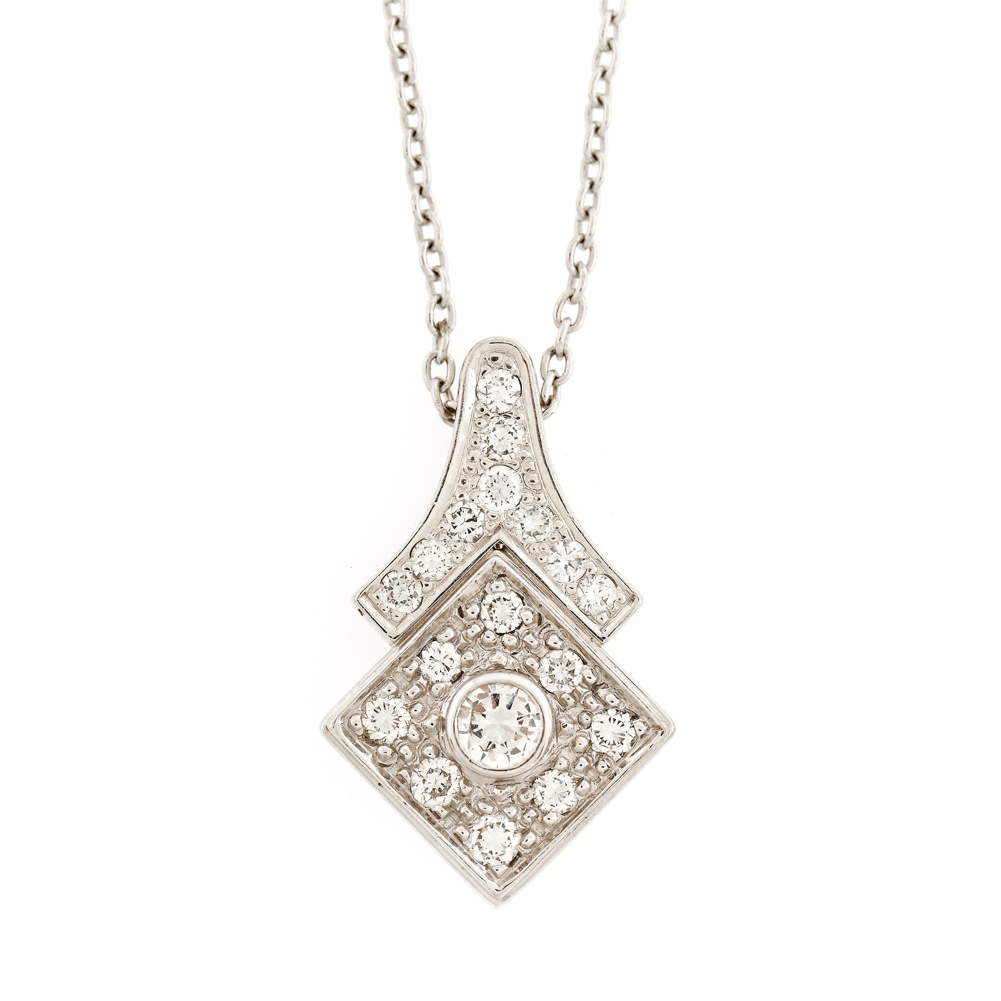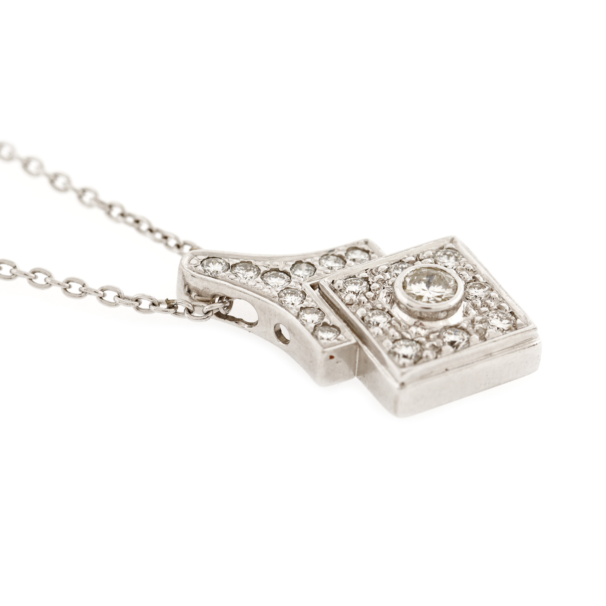 159. Lanț cu pandantiv din aur alb, ornat cu diamante