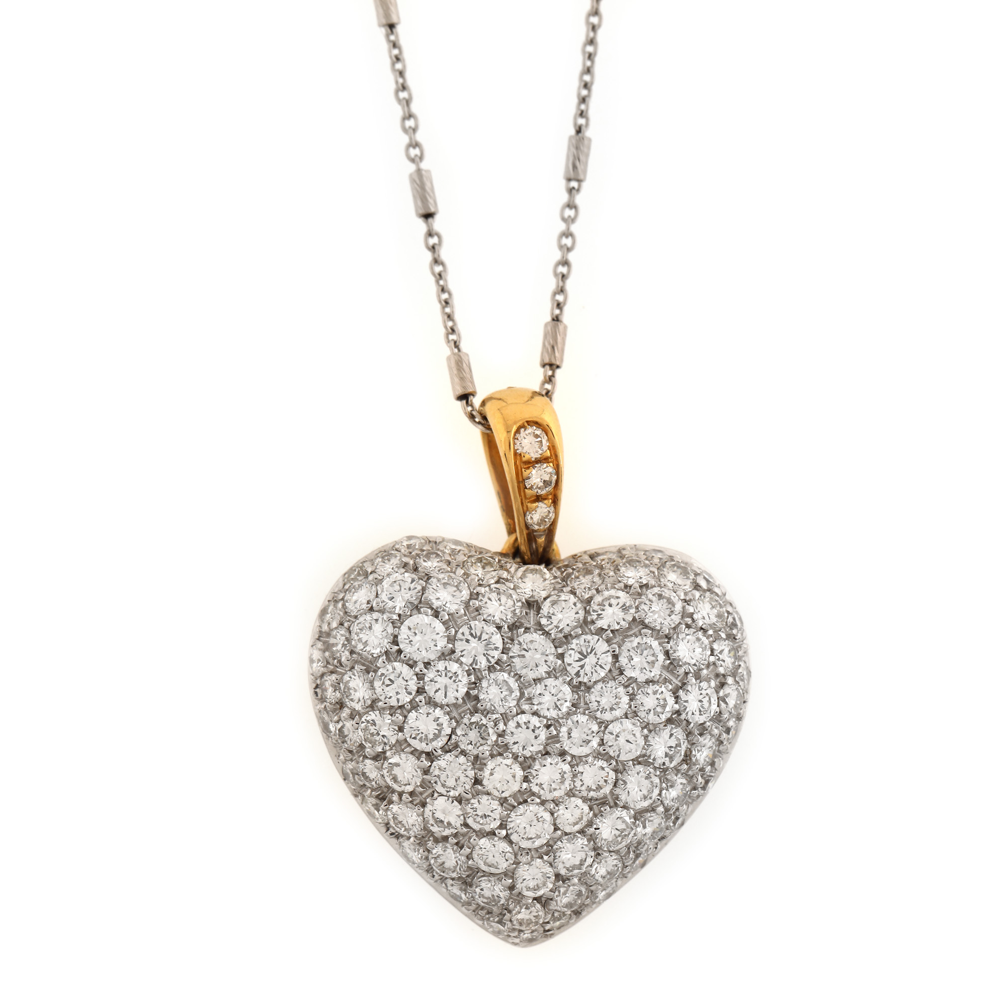 112. Lanț cu pandantiv din aur în două culori, decorat cu diamante
