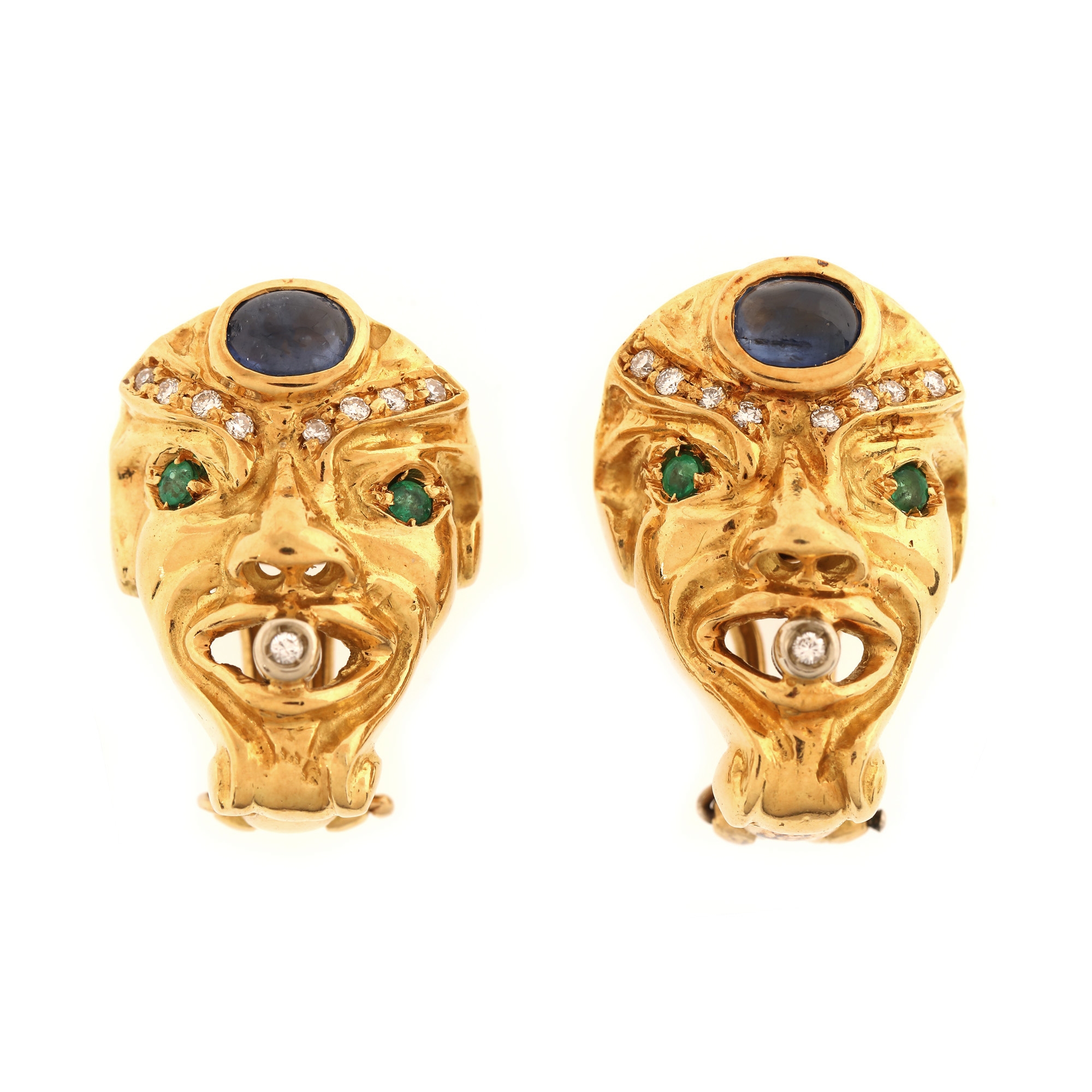 179. Perche de cercei din aur în două culori, decorată cu safire, smaralde și diamante