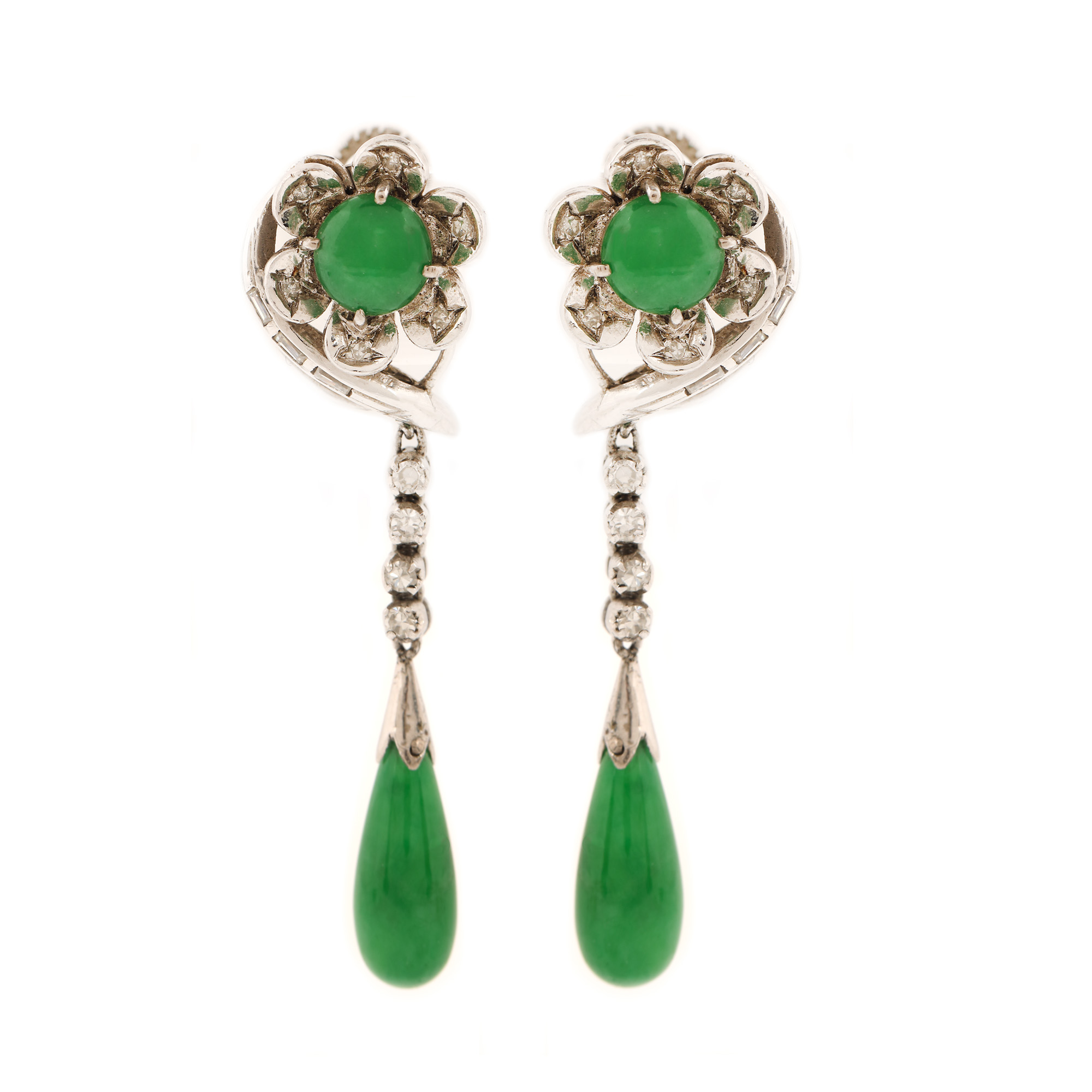 76. Pereche de cercei din aur alb, decorată cu jadeite și diamante, provine din colecția Marinei Dimitropoulos