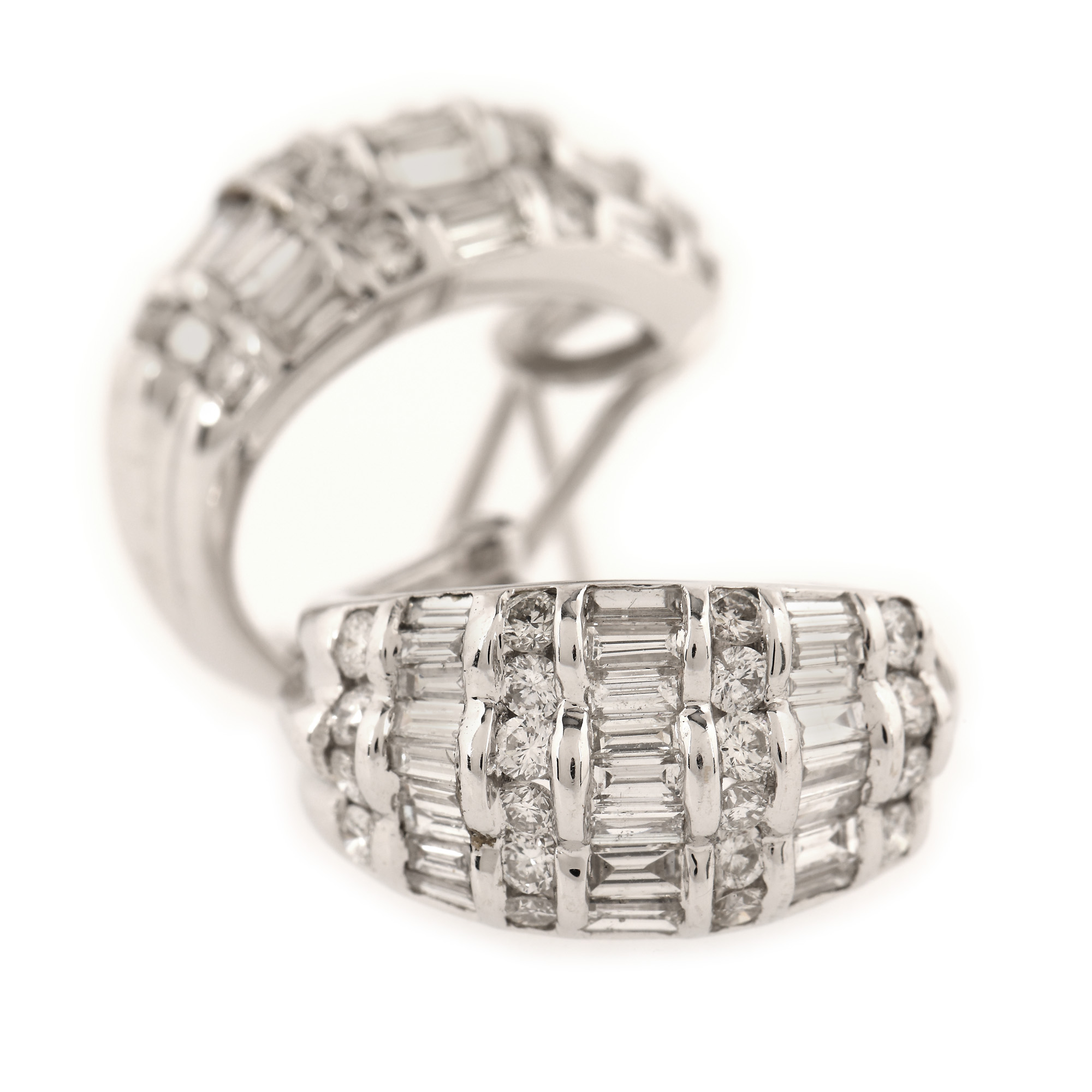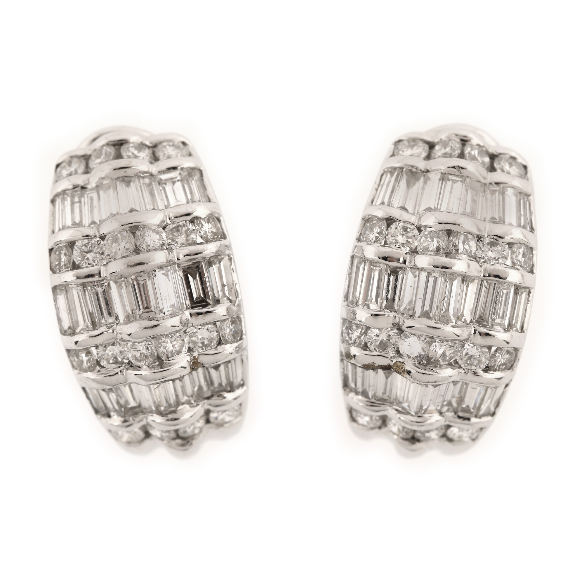 168. Pereche de cercei din aur alb, ornată cu diamante briliante și baghete