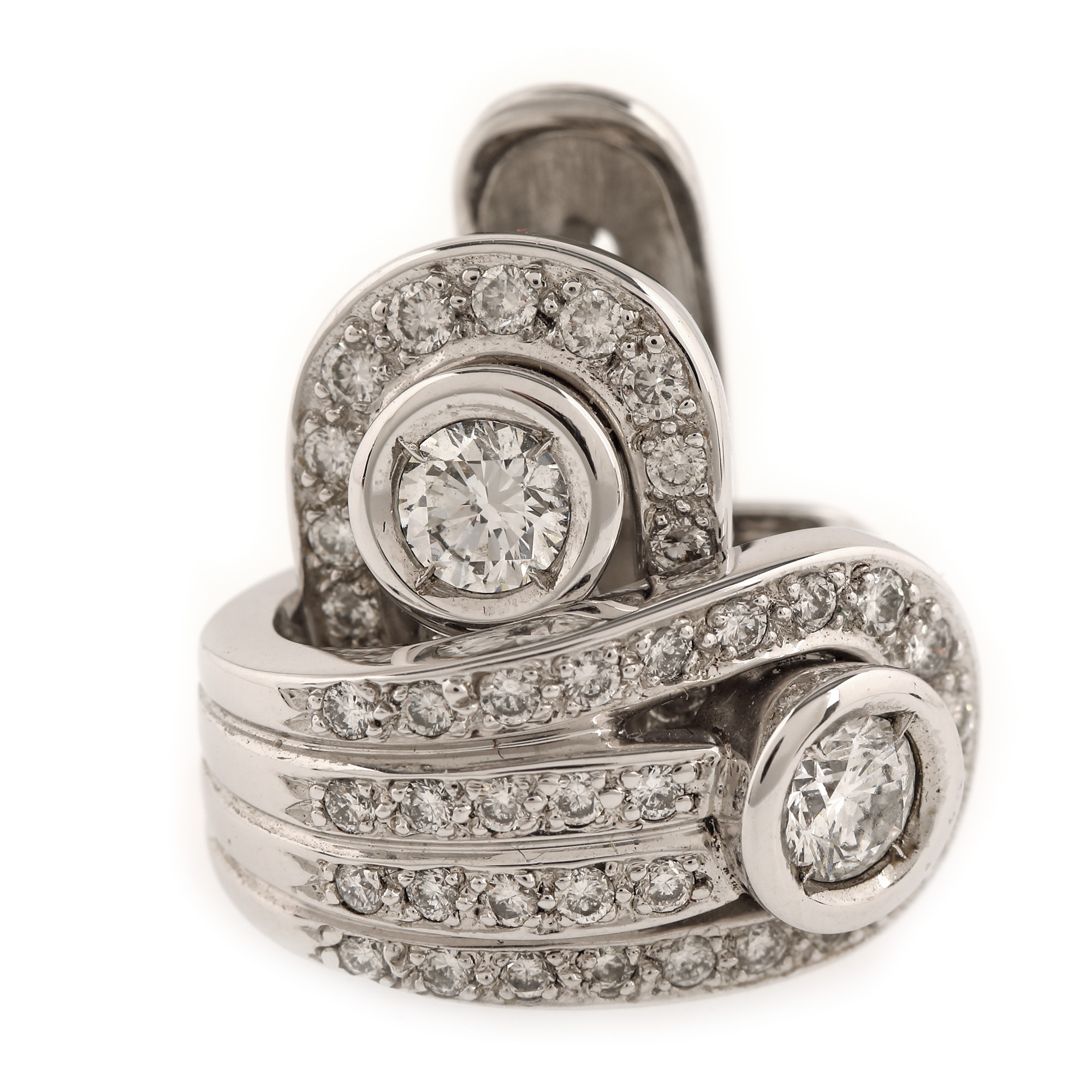 177. Pereche de cercei din aur alb, ornată cu diamante