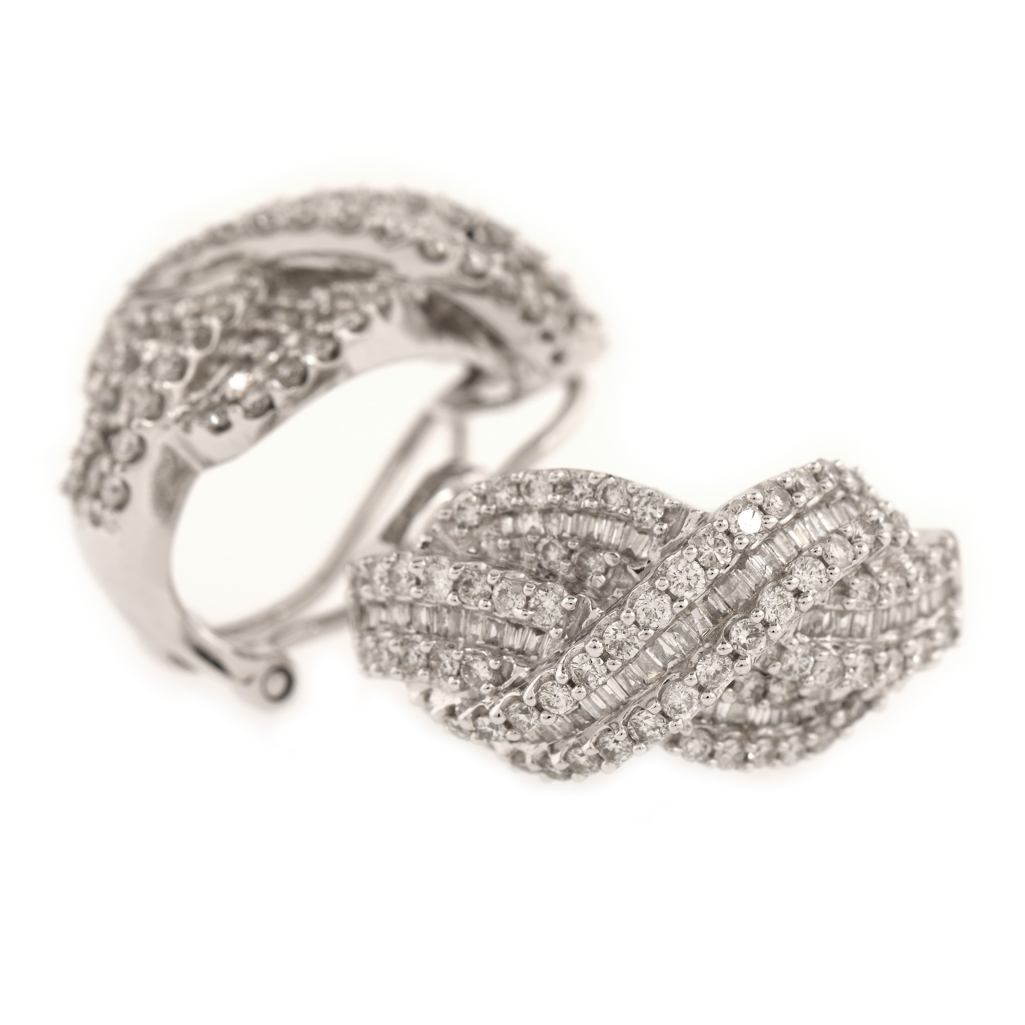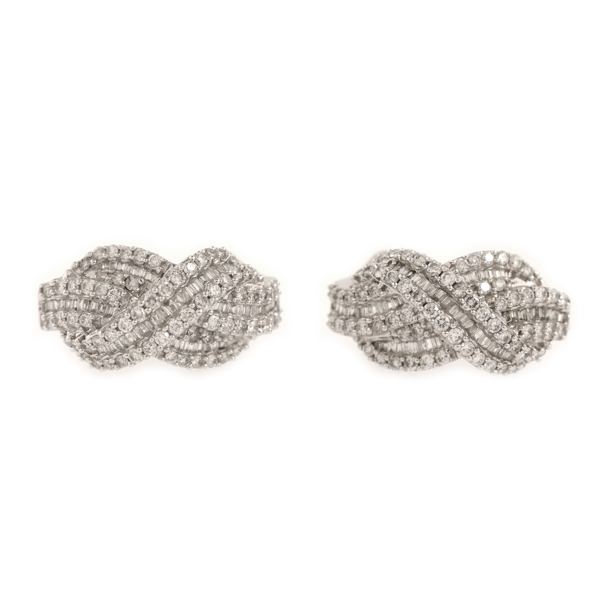 157. Pereche de cercei din aur alb, pavată cu diamante