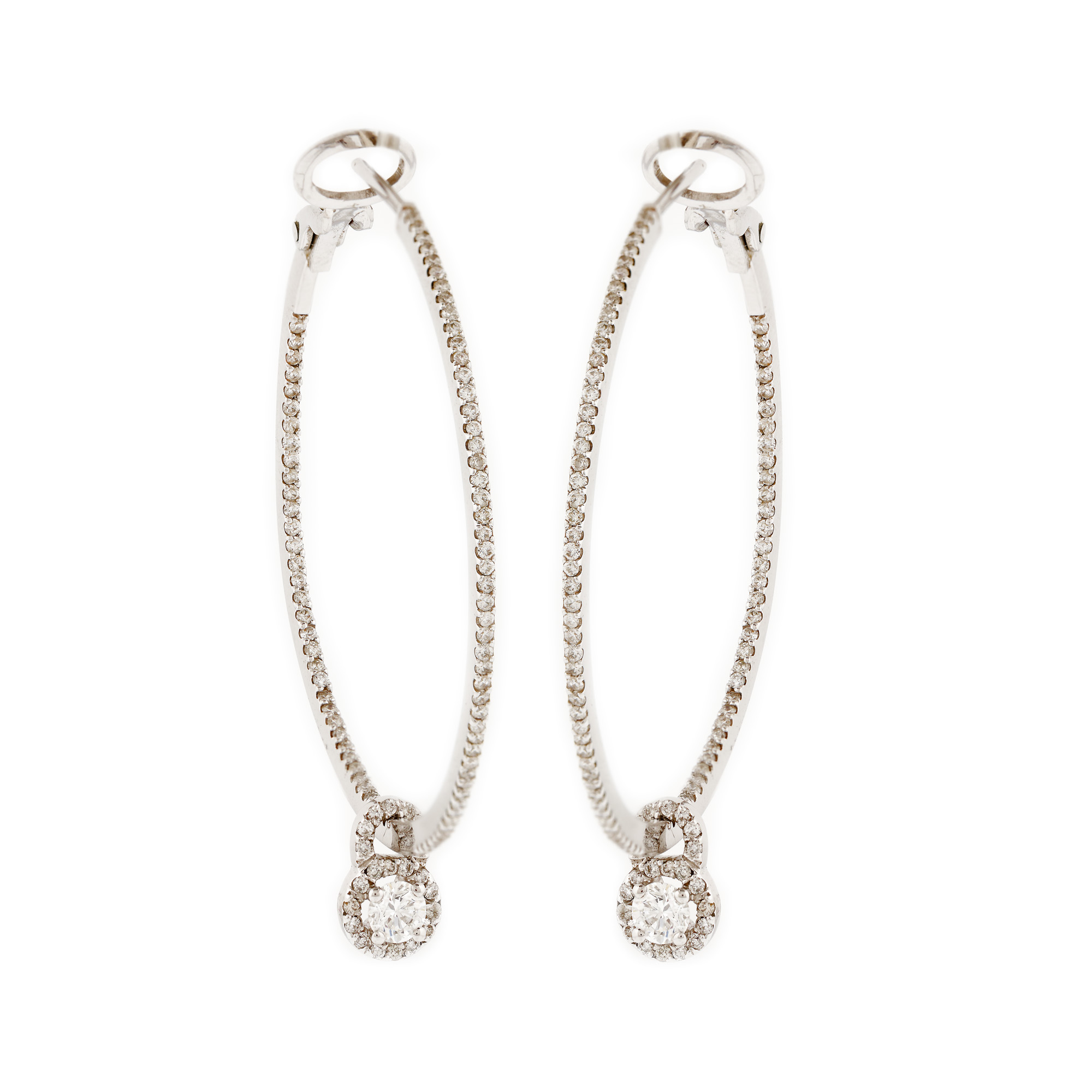 71. Pereche de cercei din aur alb, pavată cu diamante