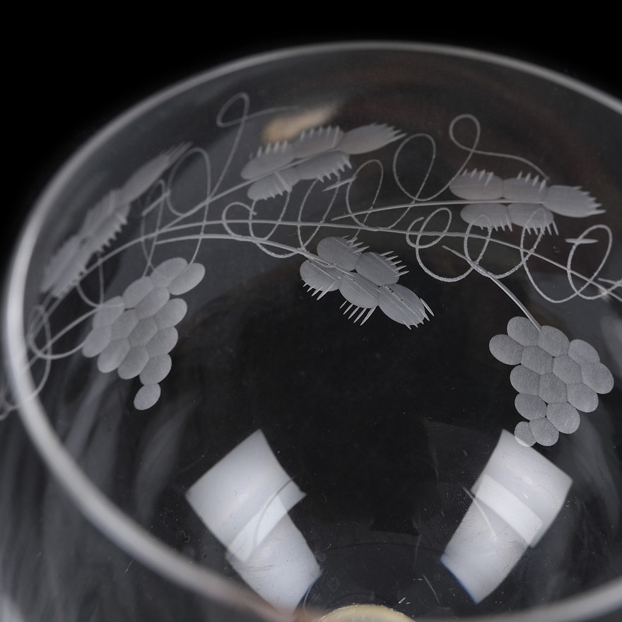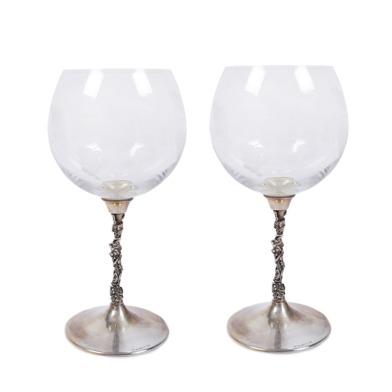 85. Pereche de pahare din cristal, cu picior din argint, decorat cu struguri și viță-de-vie, meșter Cellerini Danilo [Cca. 1968-1971]