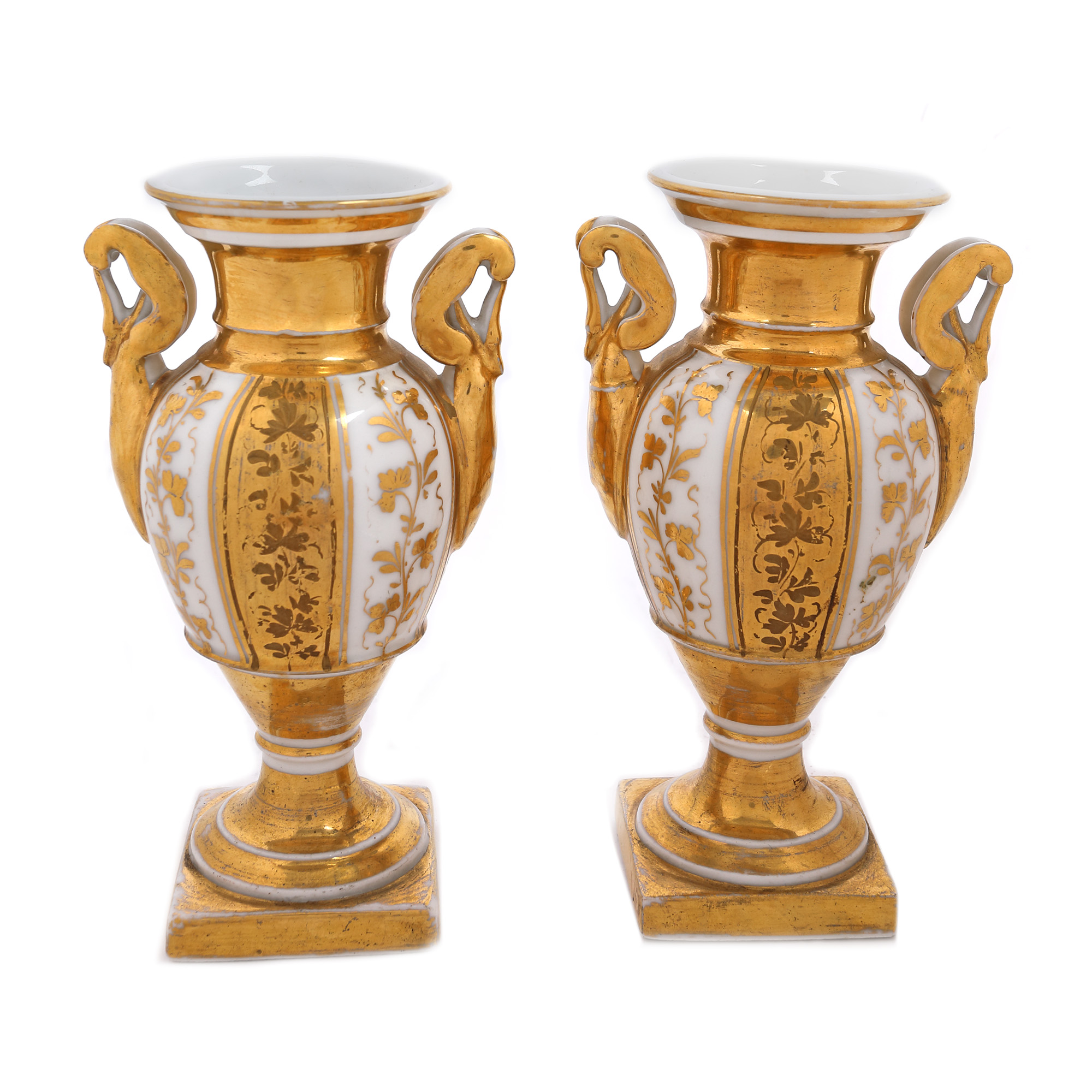 136. Pereche de vase Empire din porțelan, cu decor vegetal [Sec. XX]