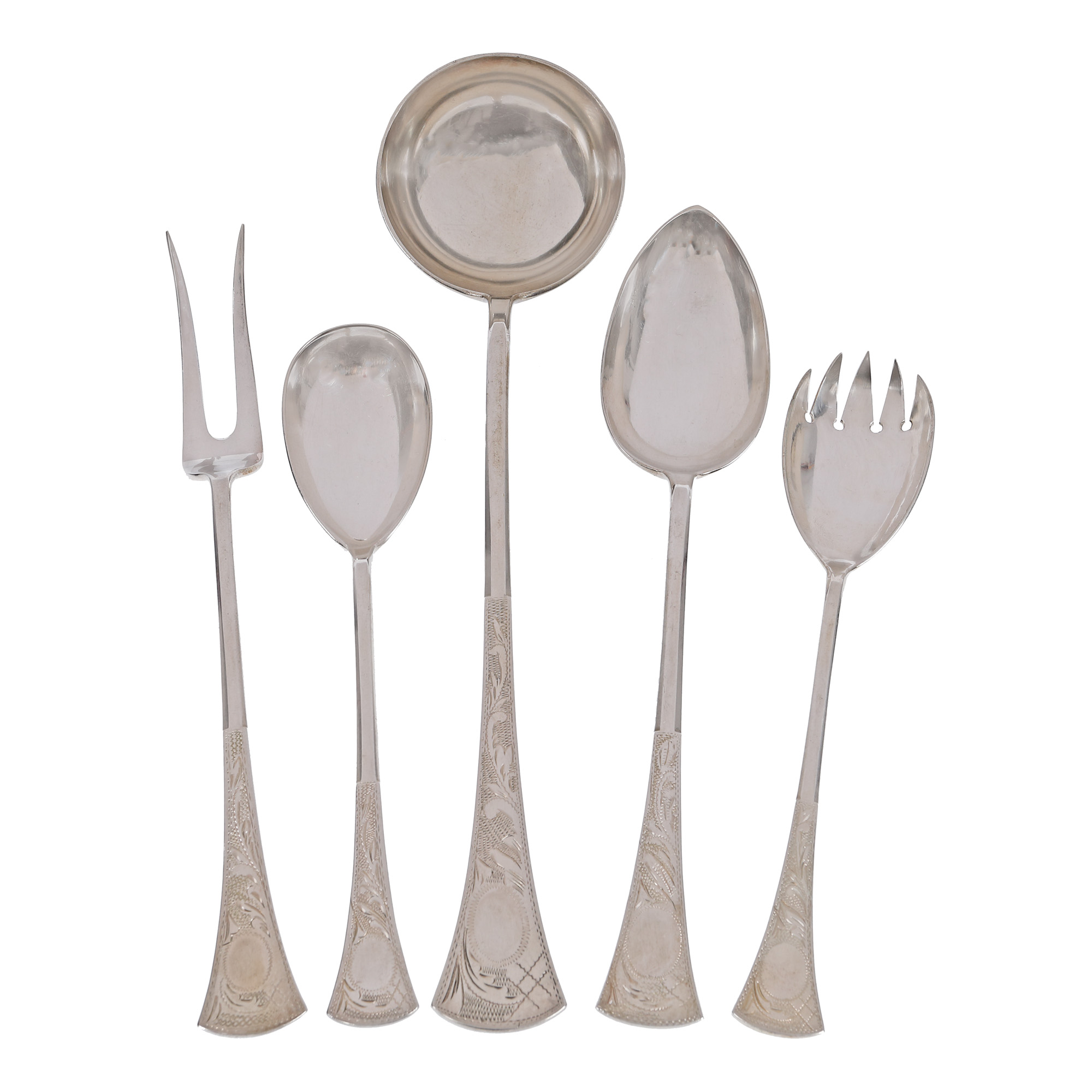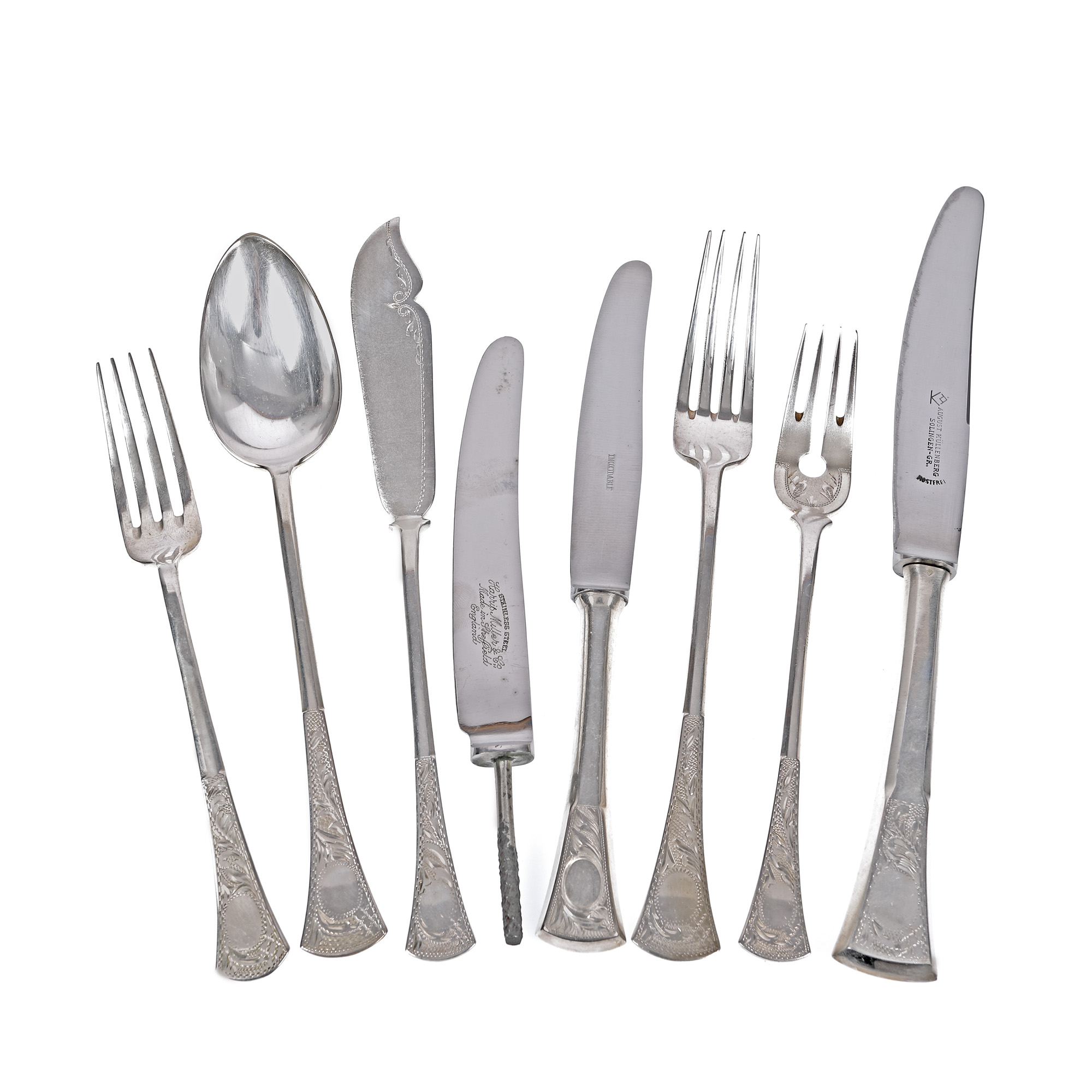 164. Set de tacâmuri din argint pentru 12 persoane, ornat cu decor vegetal, perioada interbelică