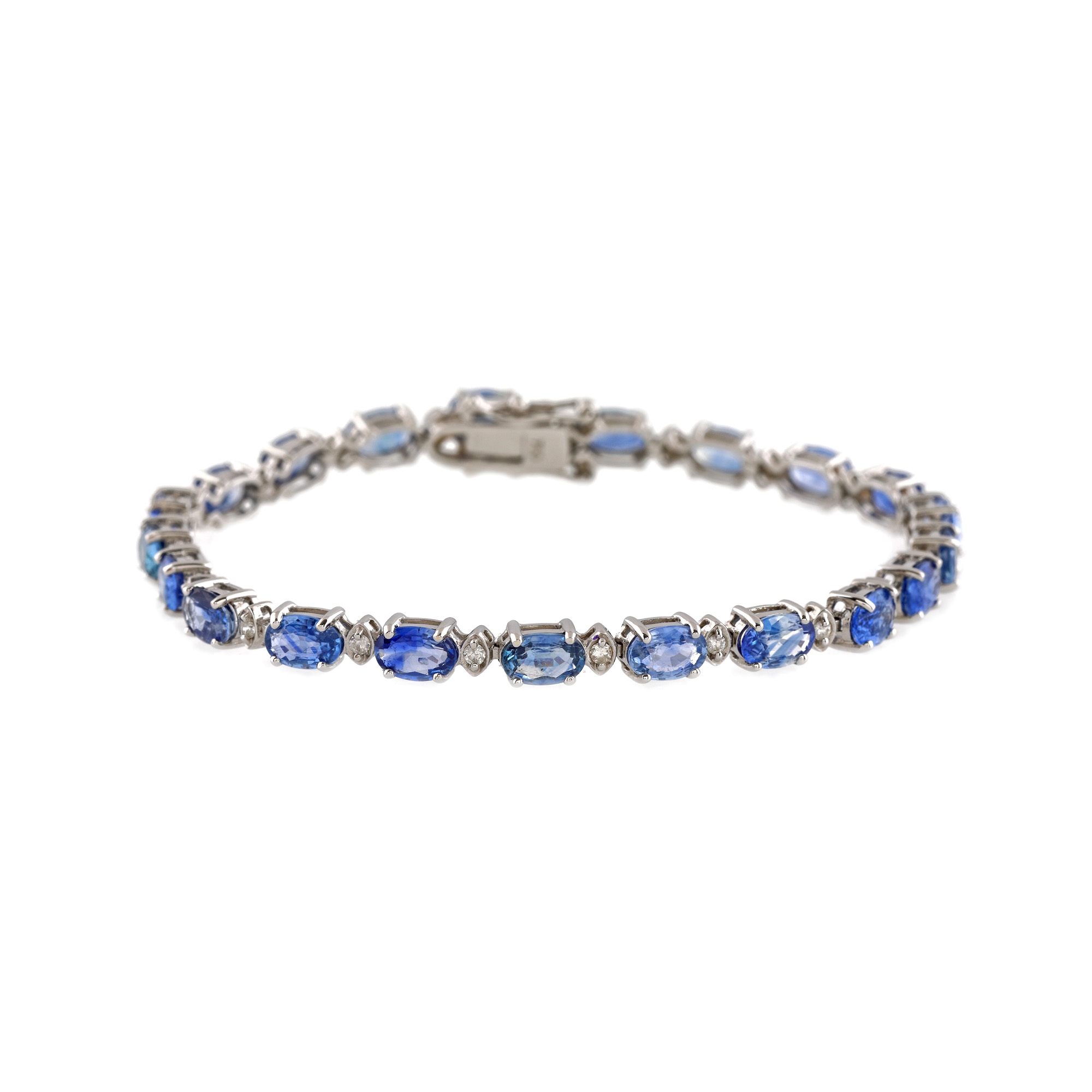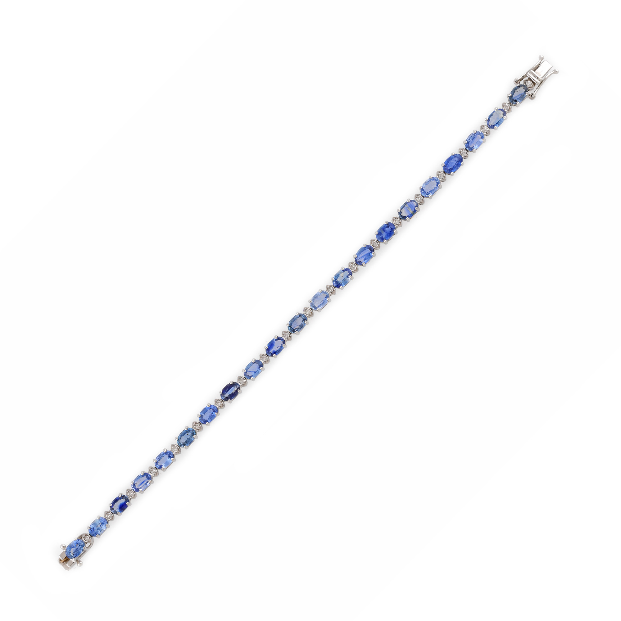 21 safire oval fațetate, culoare albastru, claritate eye-clean, cca. 8 ct. și 21 diamante rotunde briliant, culoare J-K, claritate SI2-I1, cca. 0,21 ct.