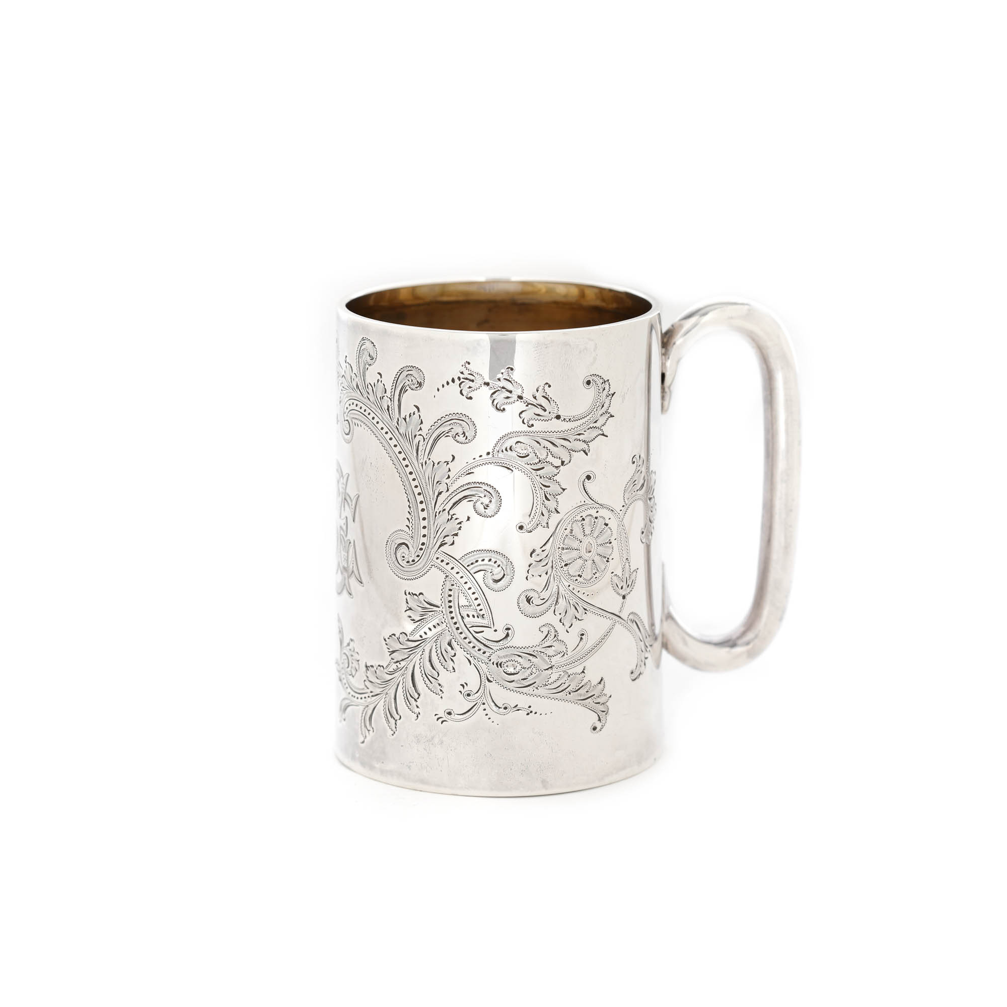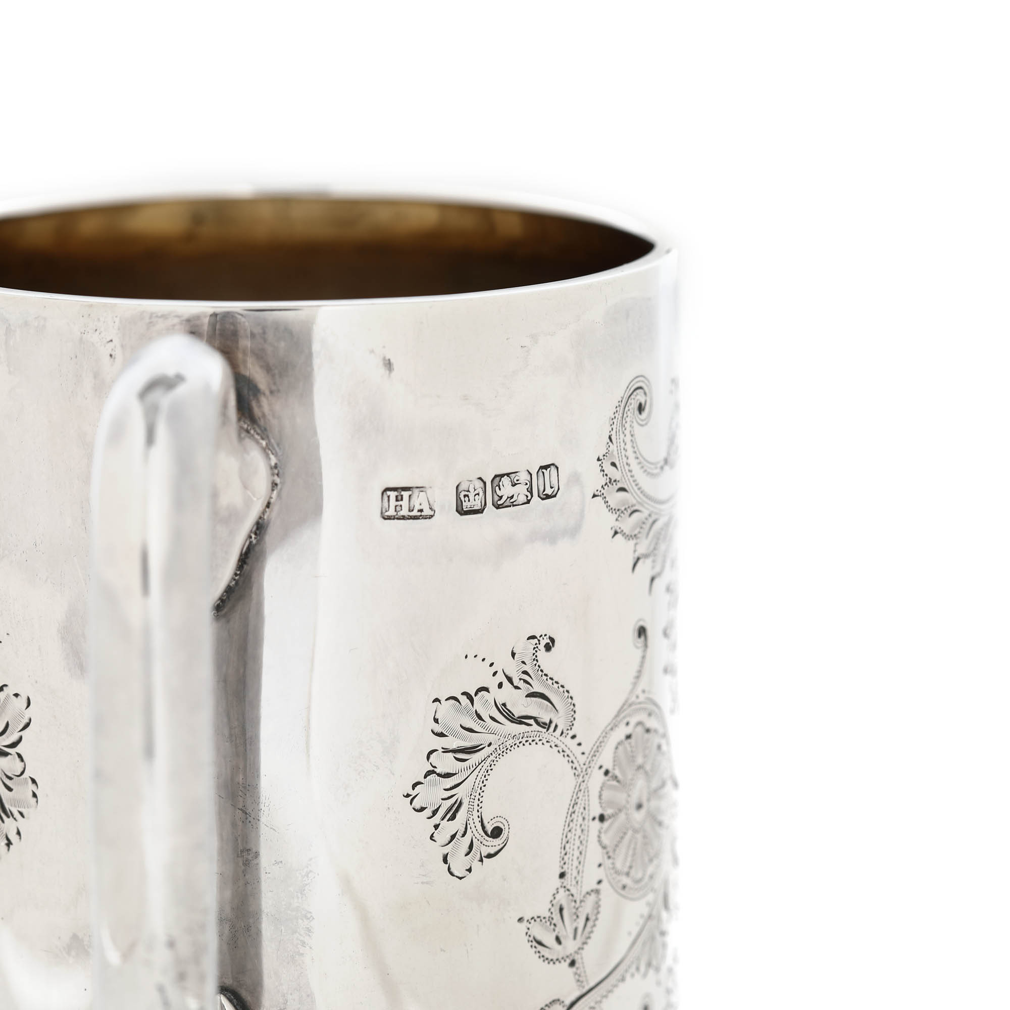 72. Cană din argint Harry Atkin, gravată cu decor floral-vegetal, cca. 1903