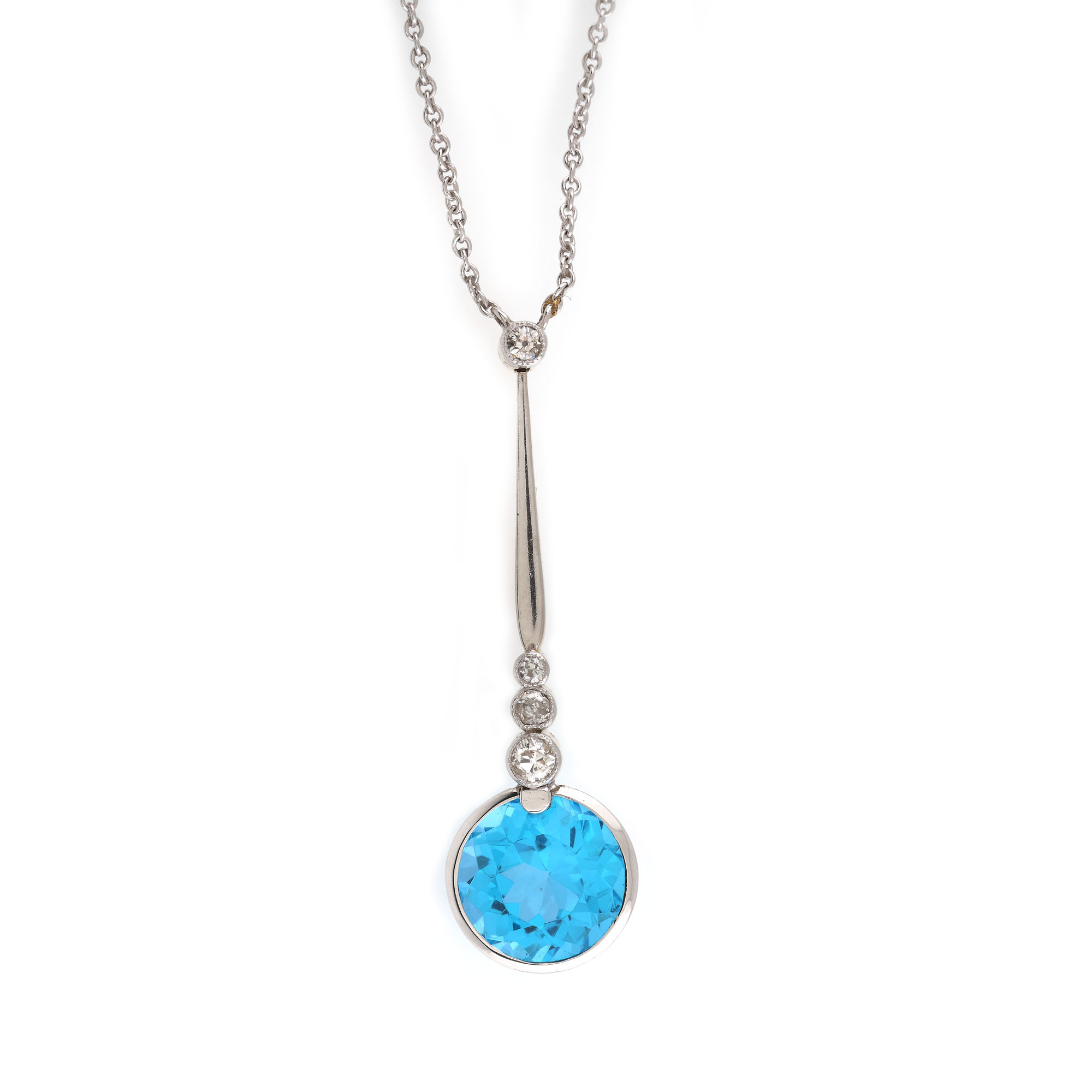 platină (lanț și parte superioară pandantiv); aur alb 18 k (montura topaz); aur alb 14 k