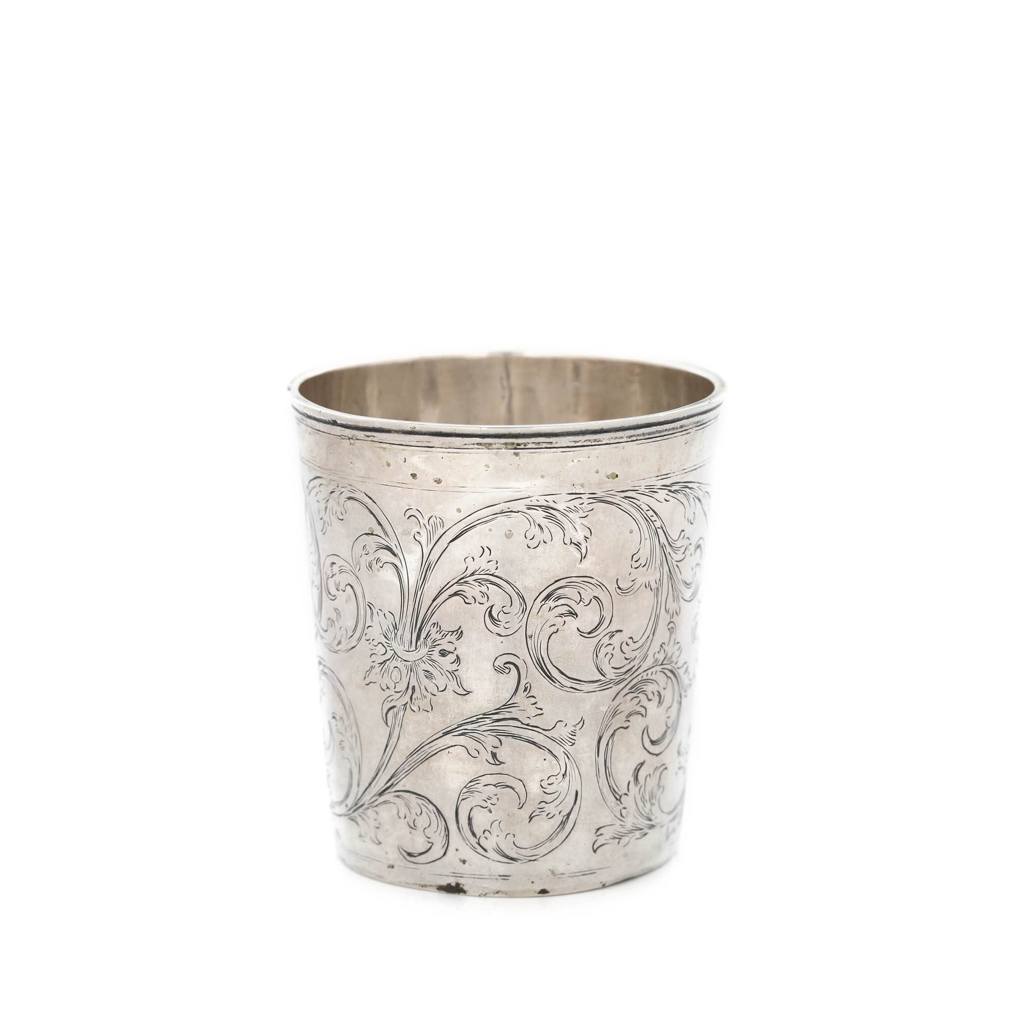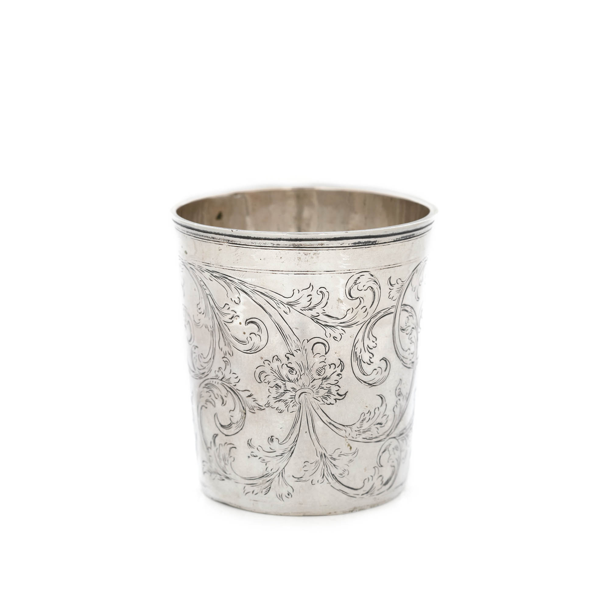 70. Pahar din argint, meșter Jurgen Richels, gravat cu motive floral-vegetale în volute, cca. 1710, piesă de colecție