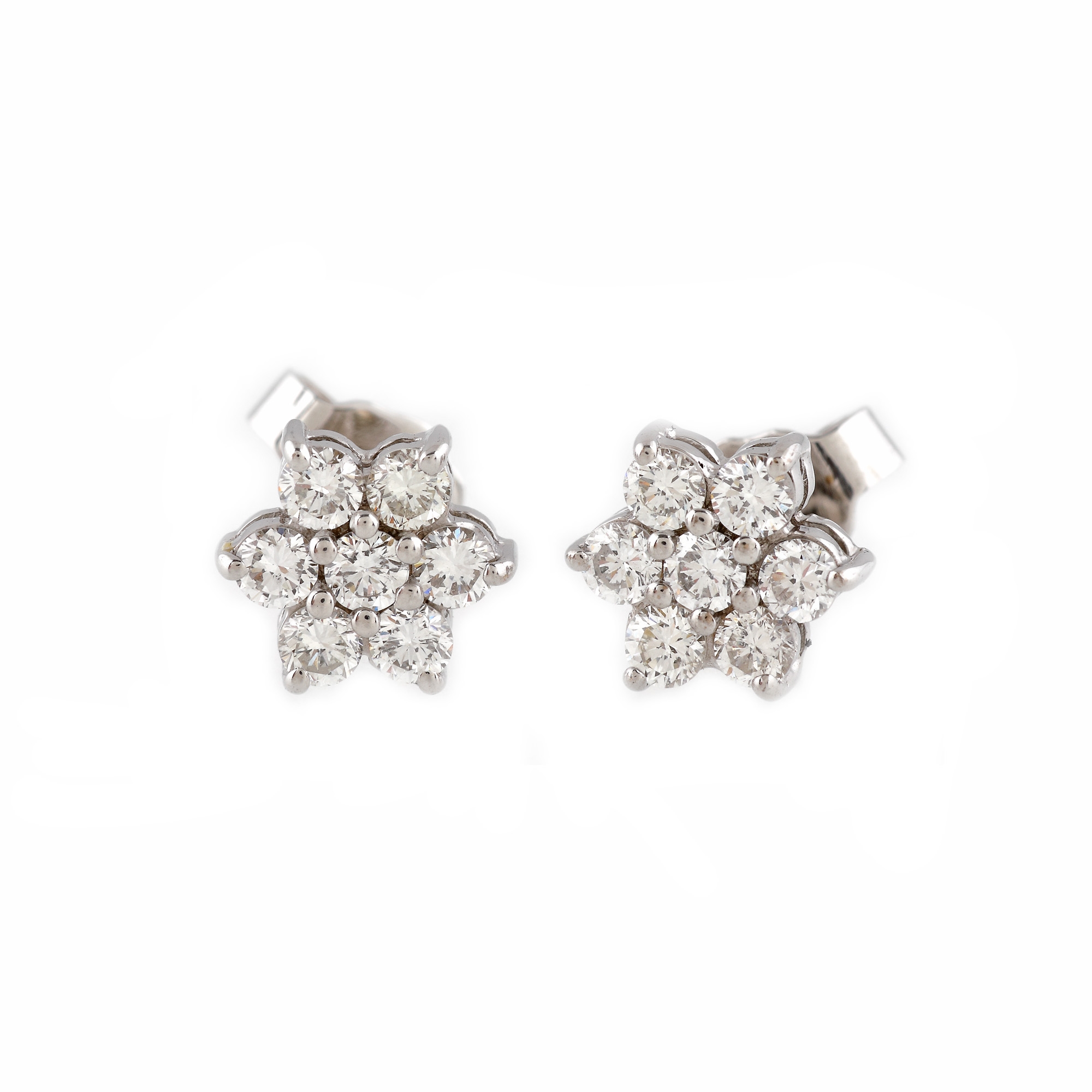 61. Pereche de cercei din aur alb, cu diamante dispuse în model floral